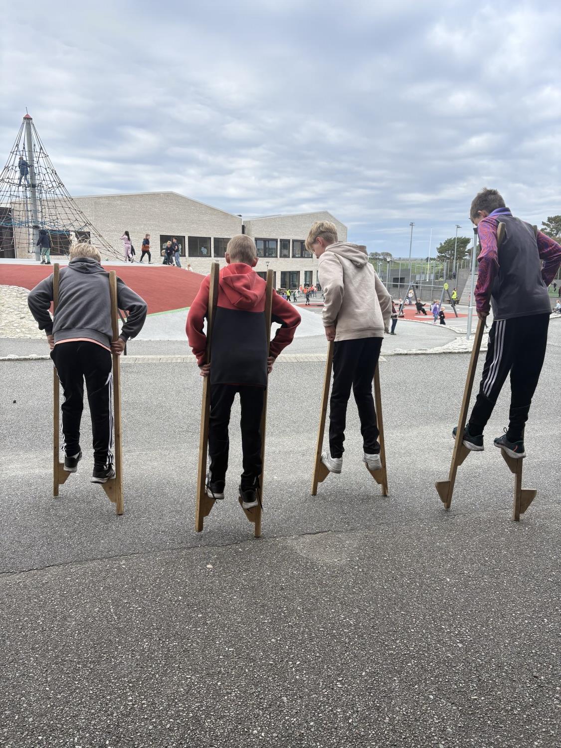Trivselsleiarane er godt i gang med leikene i friminutta.