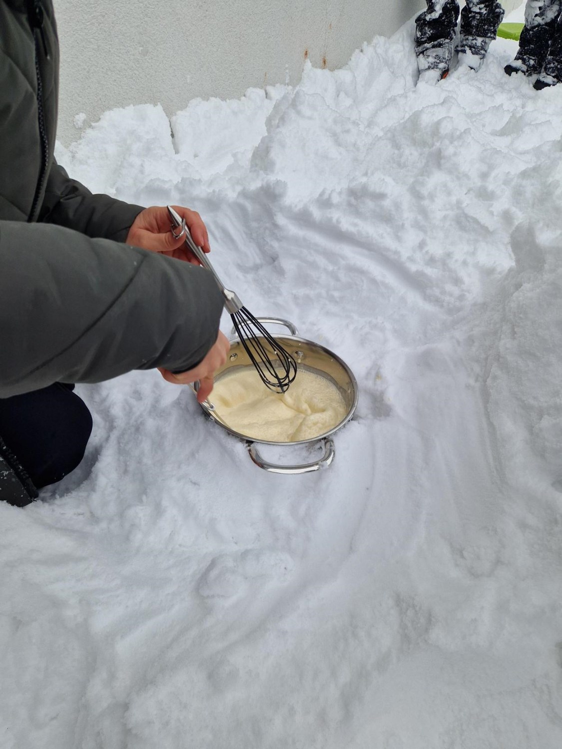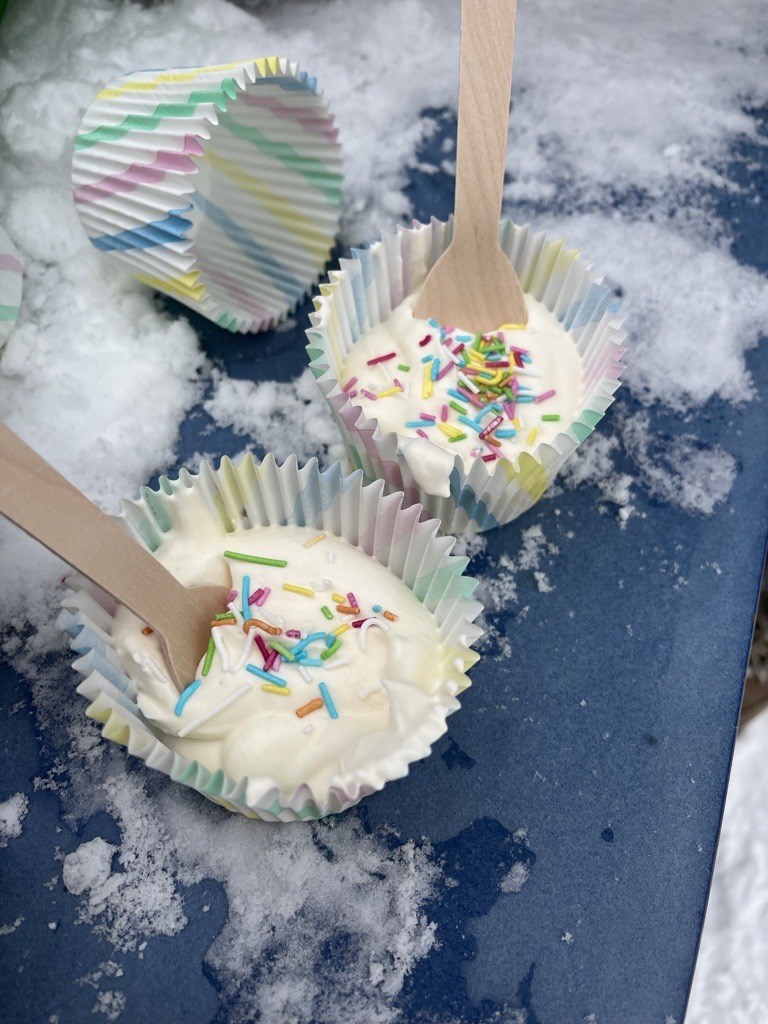 Vi har feiret med soft-is, som vi lagde ute i snøen.