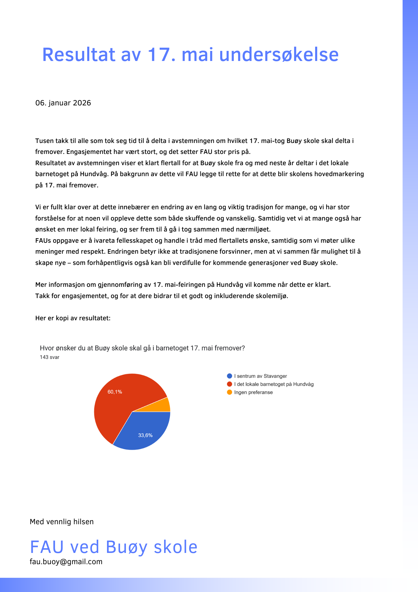 - Være en rådgivende forening på vegne av foresatte ved Buøy skole