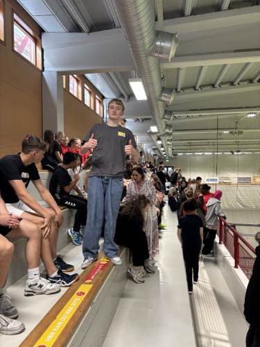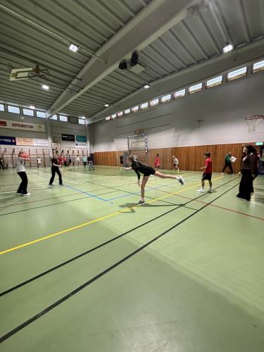 I veke 40 har me eit tverrfagleg fokus på psykisk helse i samband med Verdensdagen for psykisk helse. I år har elevrådet bestemt at slagordet skal vere #styrk fellesskapet, og dei har tatt initiativ til og planlagt ei kanonballturnering for heile skulen. Laga var sett saman på tvers av klassar og trinn, og alle elevane har vore med på eit lag. I dag gjekk det slag i slag med kampar i Timehallen, og fredag er det sluttspel med finale og kamp mellom vinnarlaget og lærarlaget. I bildegalleriet kan de sjå nokre glimt frå dagen.