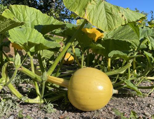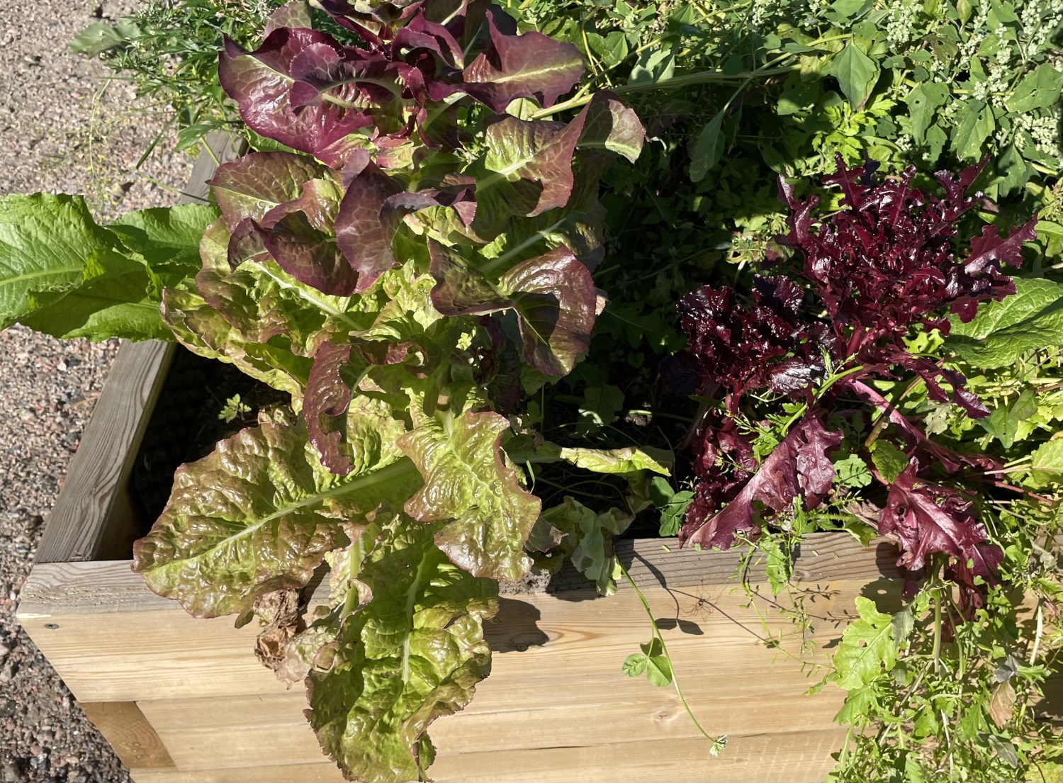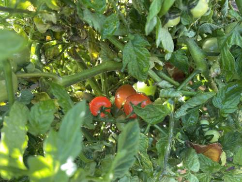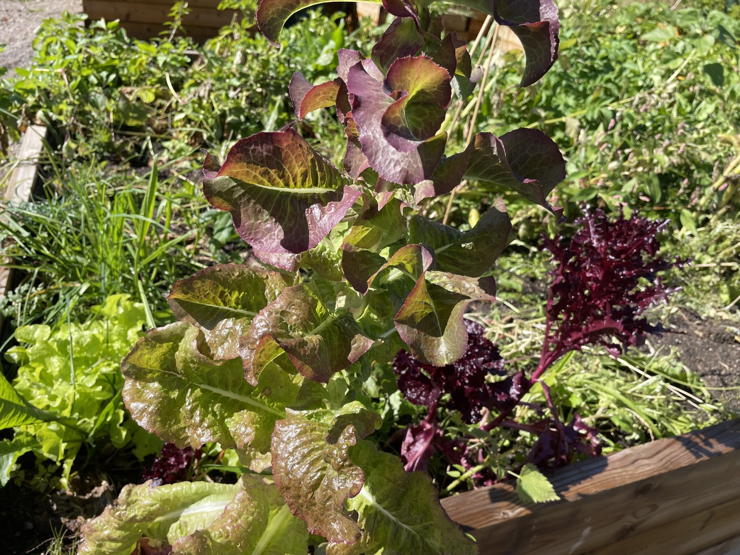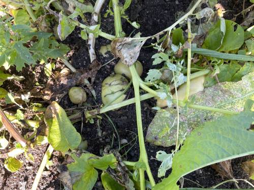 Poteter, purre, reddiker, neper, salat, gressløk, grønnkål, persille, rabarbra, tomater, bondebønner, frukttrær, bærbusker og en haug med gresskar var noe vi puttet i jorda i juni. Her er litt bilder av hvordan det ser ut nå i slutten av august.