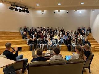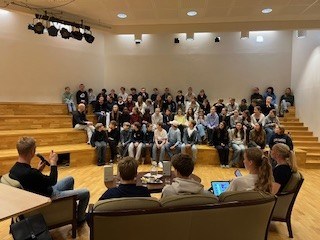 Elevane hadde førebudd seg godt og stilte mange gode og varierte spørsmål. Ein kjekk og lærerik dag med djupdykk i den litterære verda - både for elevar og lærarar!