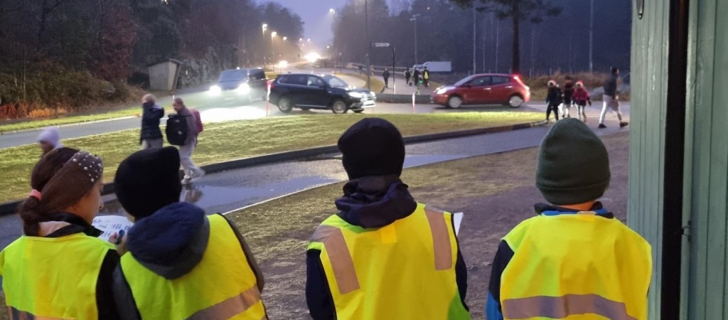Elever fra miljøutvalget har telt biler fra klokka 08.00 til 08.30.