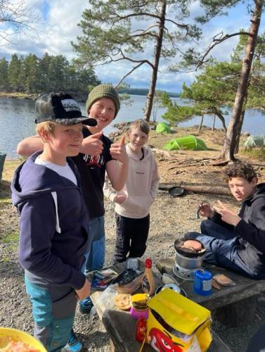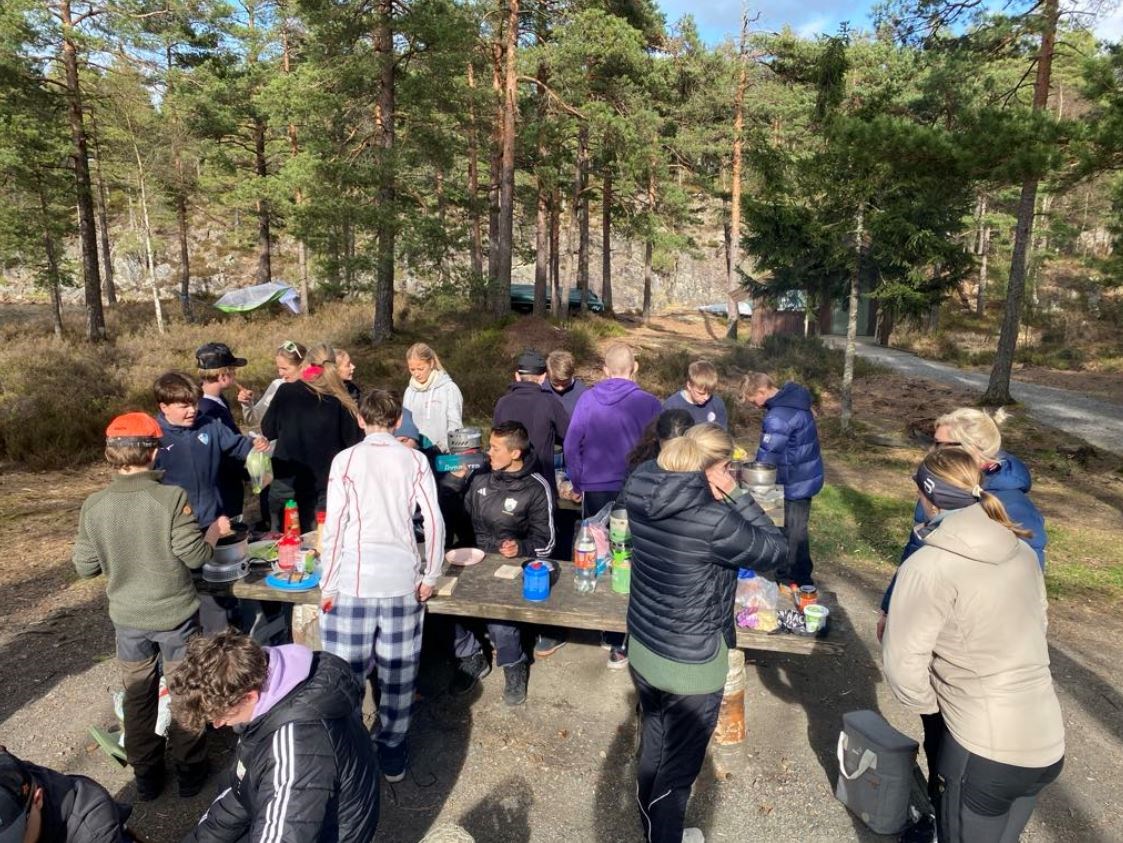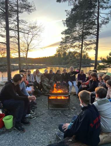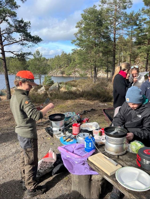 digg. Vi er utrolig imponert over alle rettene som ble laget ved hjelp av bål og stormkjøkken! Etter solnedgang samlet vi oss rundt bålet og koste oss med kakao og kjeks.