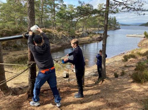 Elevene var fordelt på telt, hengekøyer og gapahuker. På planen for dagen sto kanopadling, holmgang aktiviteter (samarbeidsøvelser) og middag i grupper. Det var fint vær, men kraftig vind til å begynne med. Kanoturen måtte derfor utsettes, og det ble isteden mer