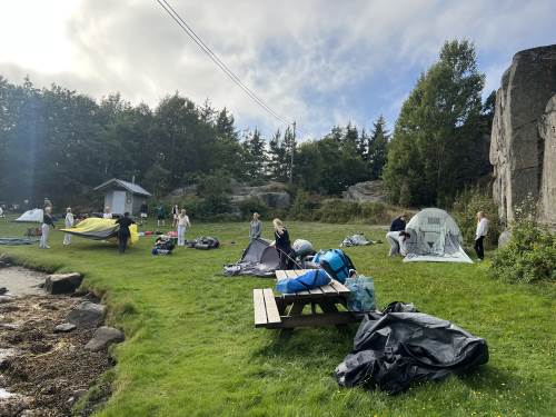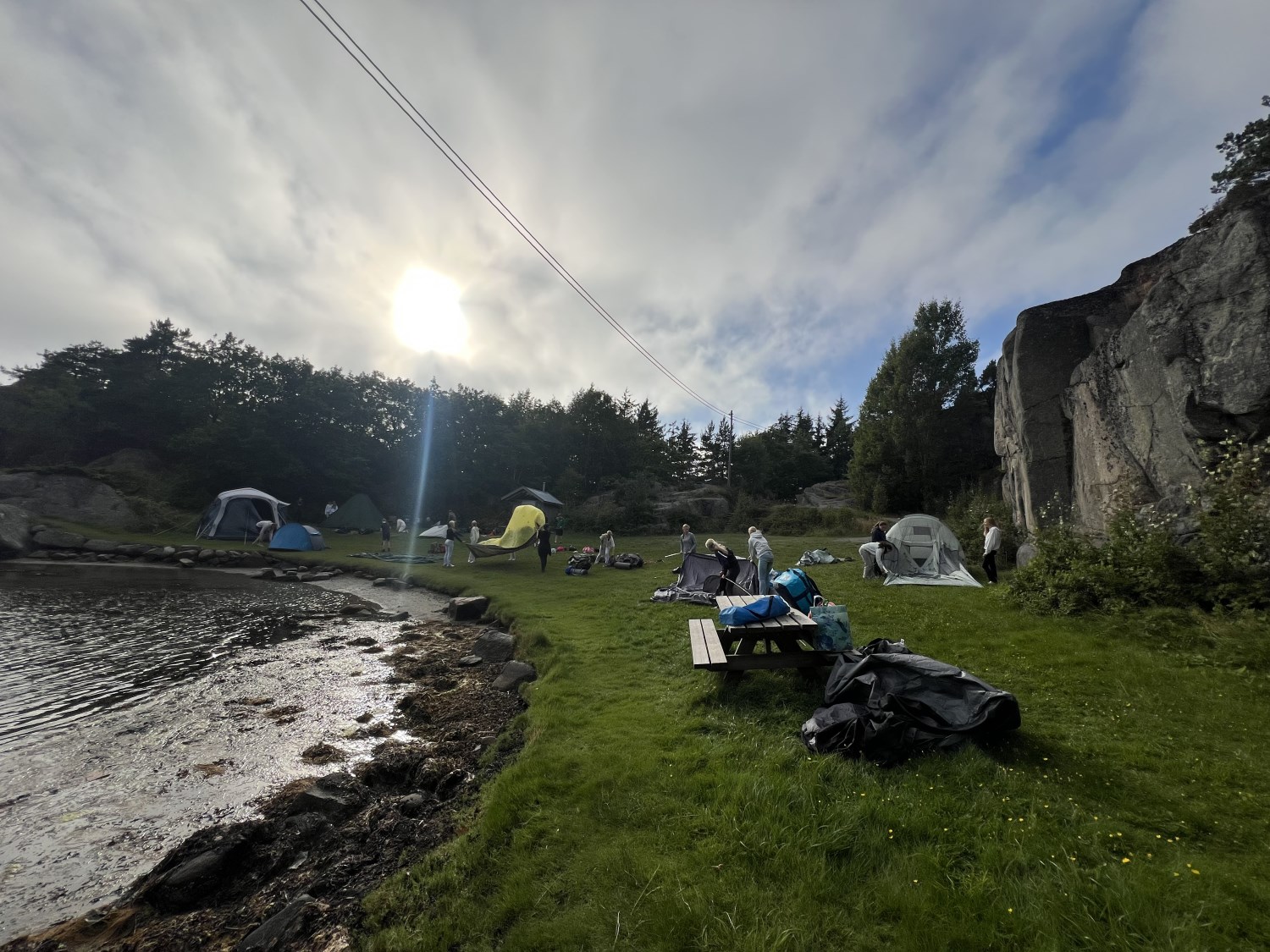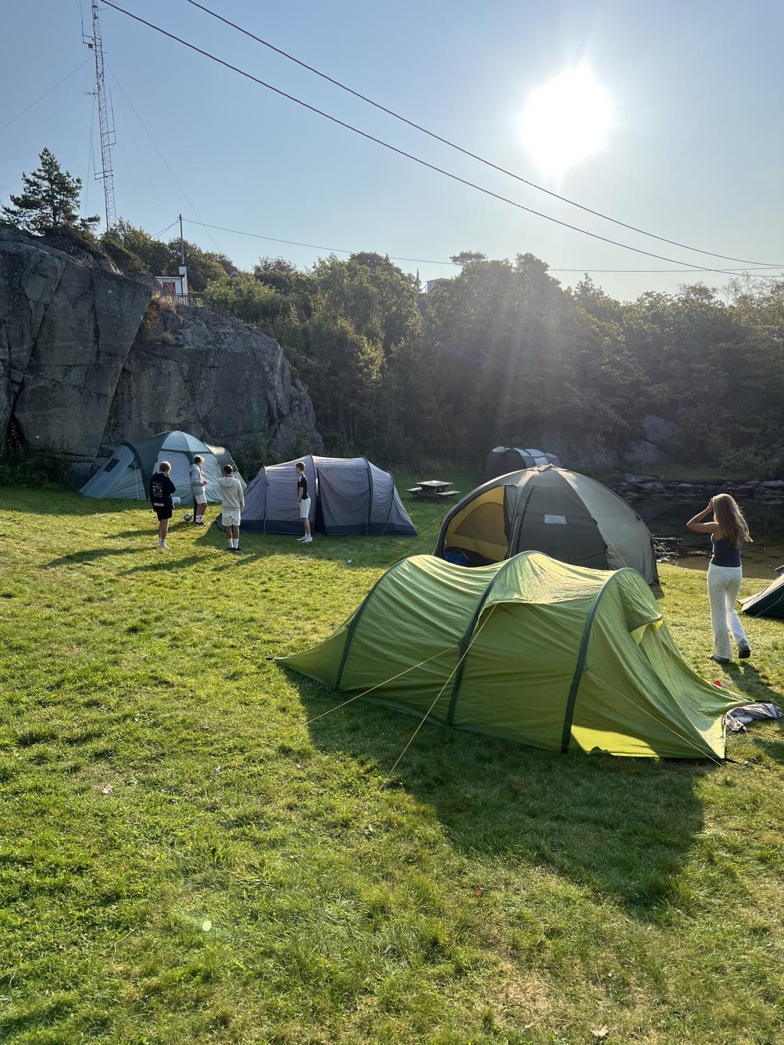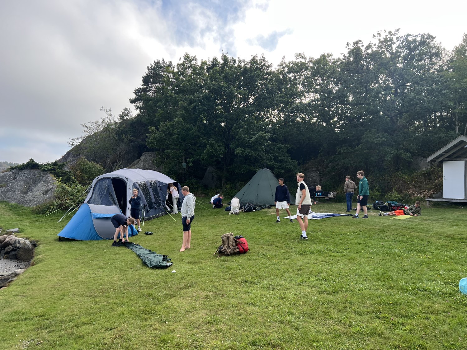 Vi møttes i Buane på ettermiddagen, og elevene brukte den første tida til å sette opp telt. Det var nyttig erfaring for flere, og de hjalp hverandre godt slik at alle fikk opp teltene sine. Vi koste oss med både ettermiddags- og morrabad, og stormkjøkkenene var i god bruk til både middag og frokost. En super tur med gjengen, og fin start på skoleåret.