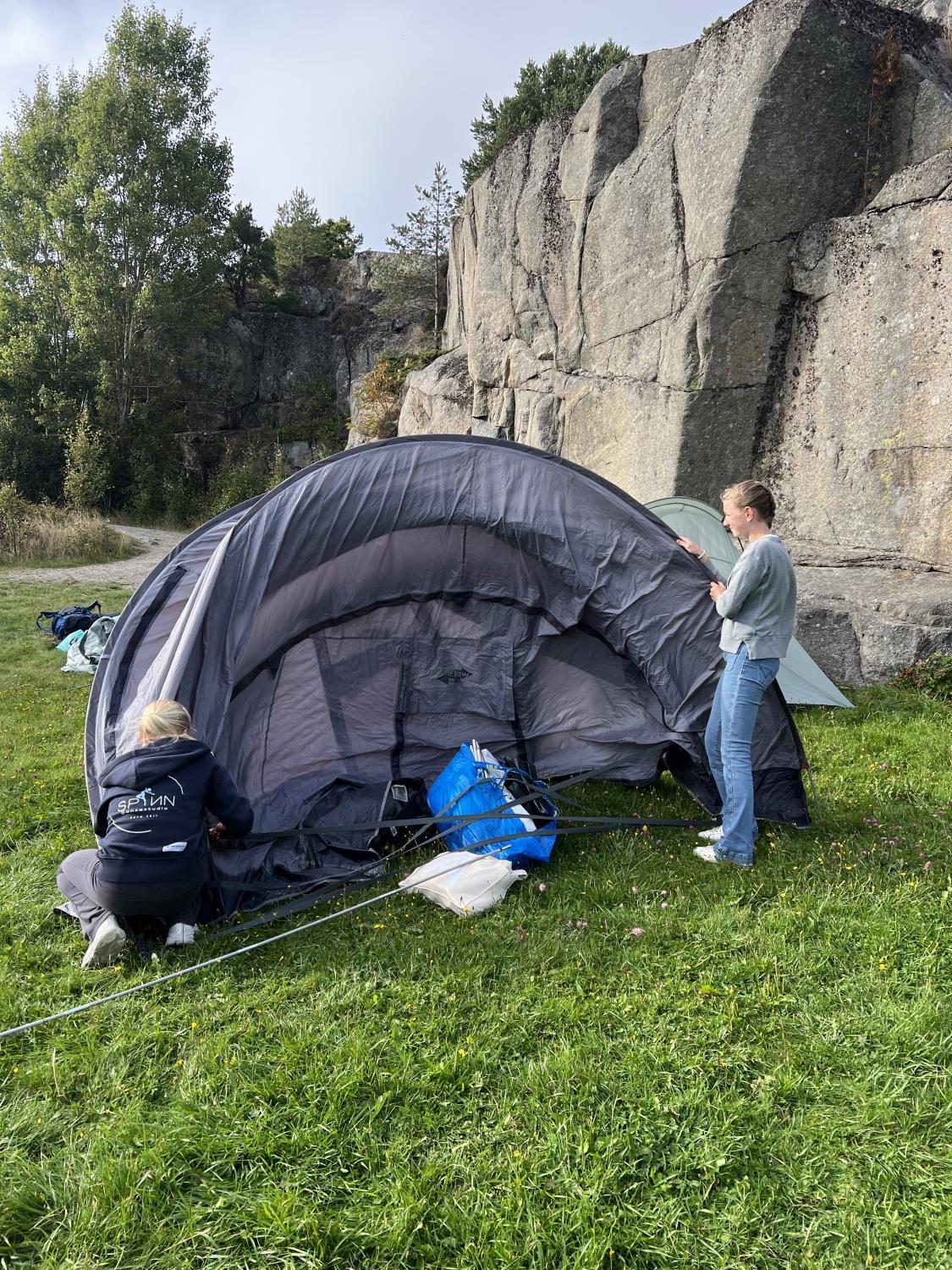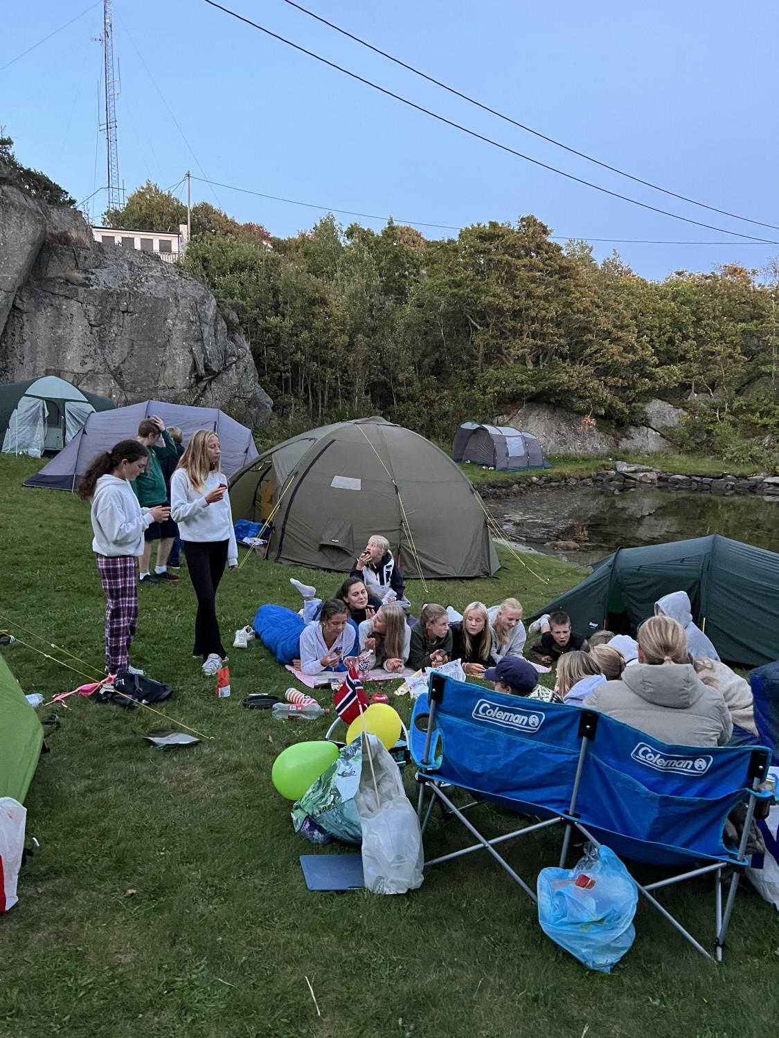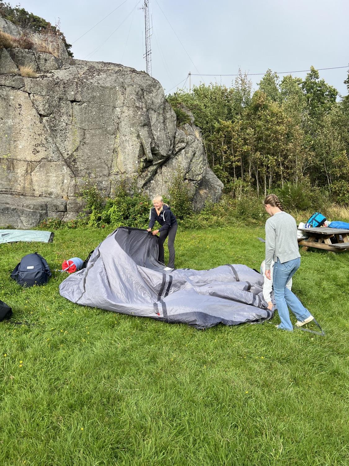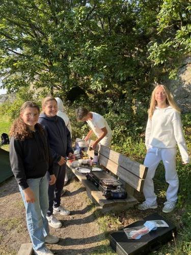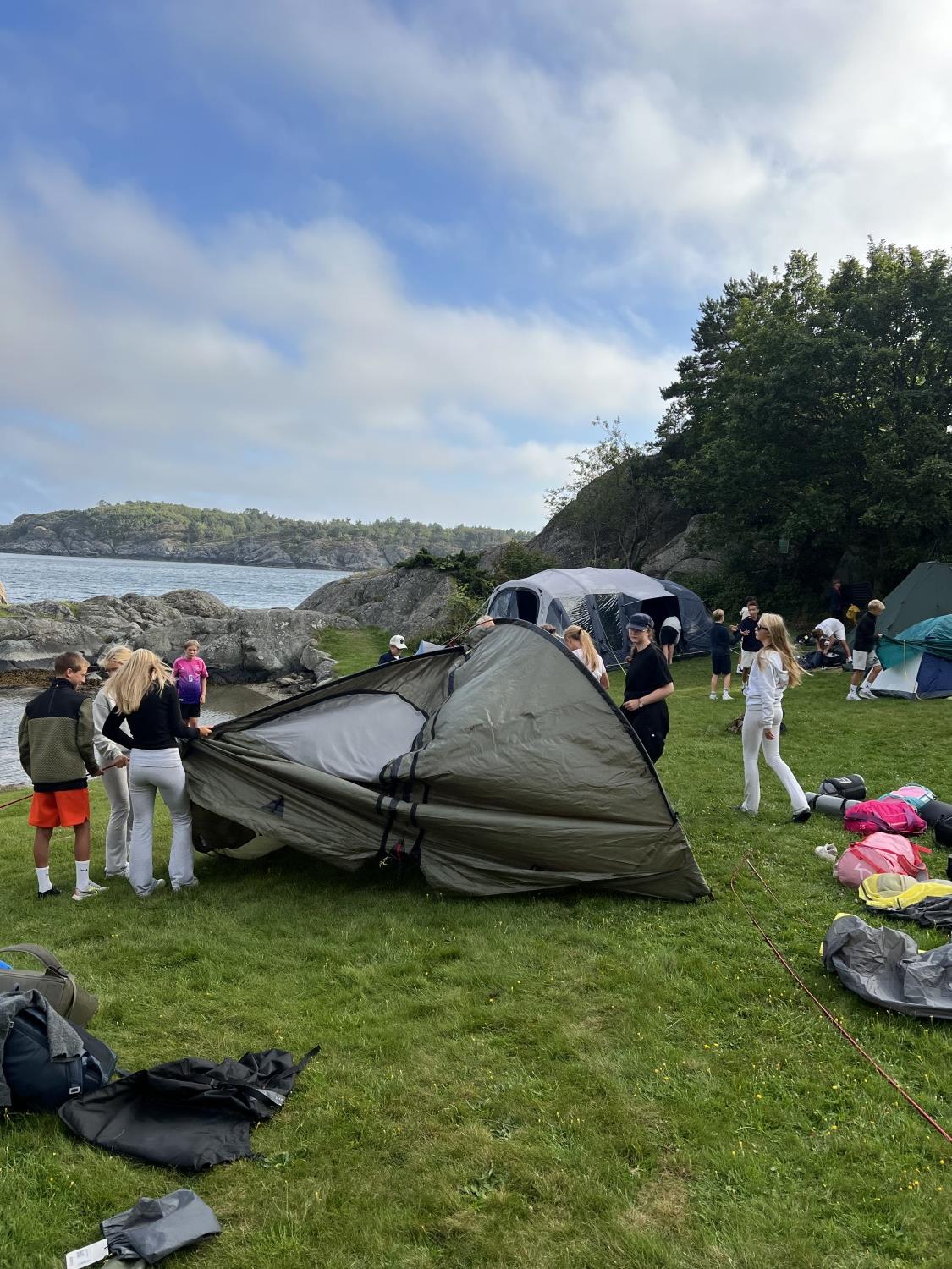 Vi møttes i Buane på ettermiddagen, og elevene brukte den første tida til å sette opp telt. Det var nyttig erfaring for flere, og de hjalp hverandre godt slik at alle fikk opp teltene sine. Vi koste oss med både ettermiddags- og morrabad, og stormkjøkkenene var i god bruk til både middag og frokost. En super tur med gjengen, og fin start på skoleåret.