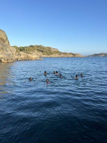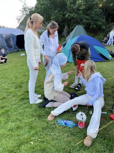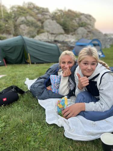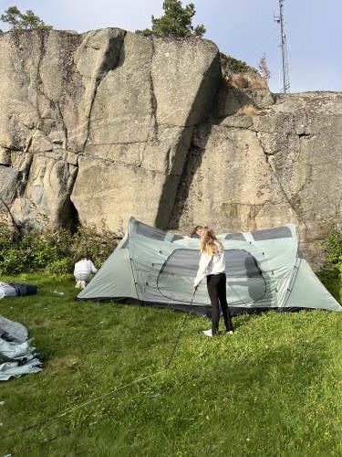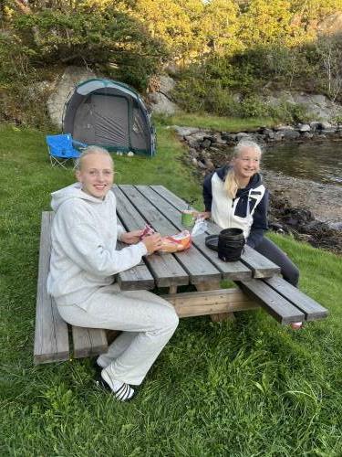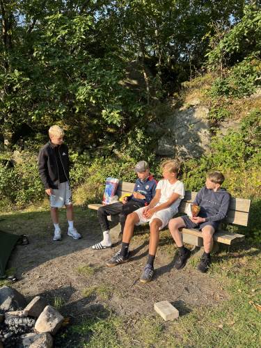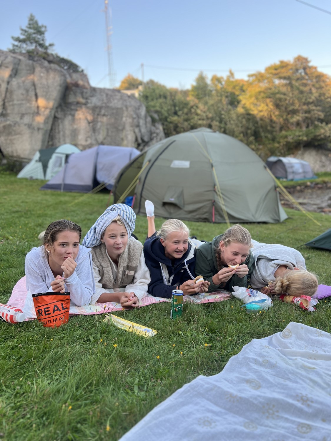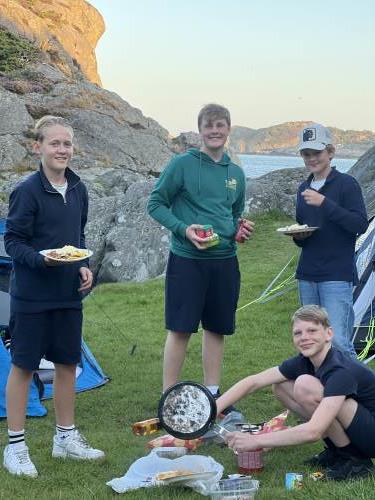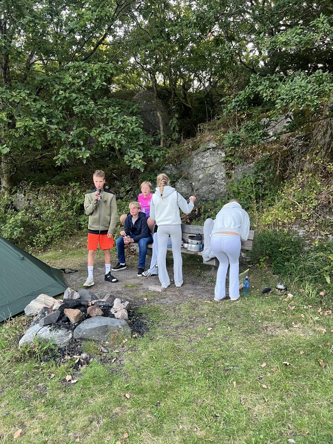 Vi møttes i Buane på ettermiddagen, og elevene brukte den første tida til å sette opp telt. Det var nyttig erfaring for flere, og de hjalp hverandre godt slik at alle fikk opp teltene sine. Vi koste oss med både ettermiddags- og morrabad, og stormkjøkkenene var i god bruk til både middag og frokost. En super tur med gjengen, og fin start på skoleåret.