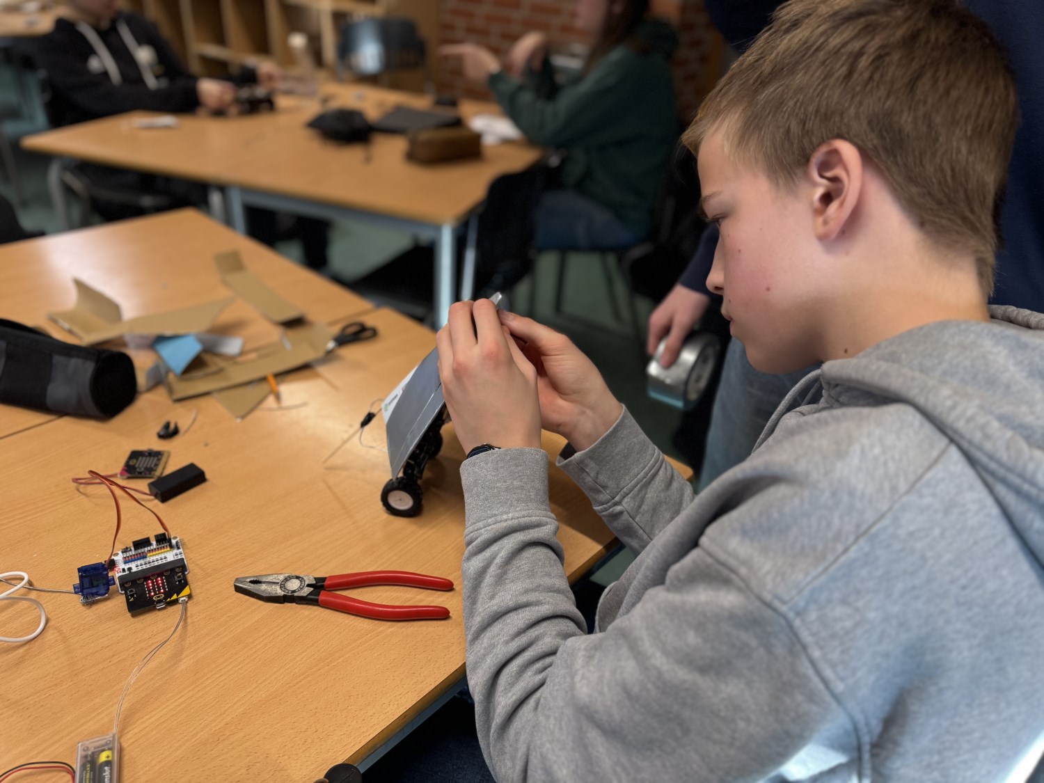 I valgfag programmering har vi de siste ukene programmert Bit:Bot-biler og fjernkontroll, for så å bygge rene krigsmaskinene ut av de. Målet var ballongkrig, og i dag gjennomførte 9. trinnselevene første "krig"! Høyt engasjement og mye latter. Ta en titt på bilder fra prosessen og kampe, og film fra dagens kamp!