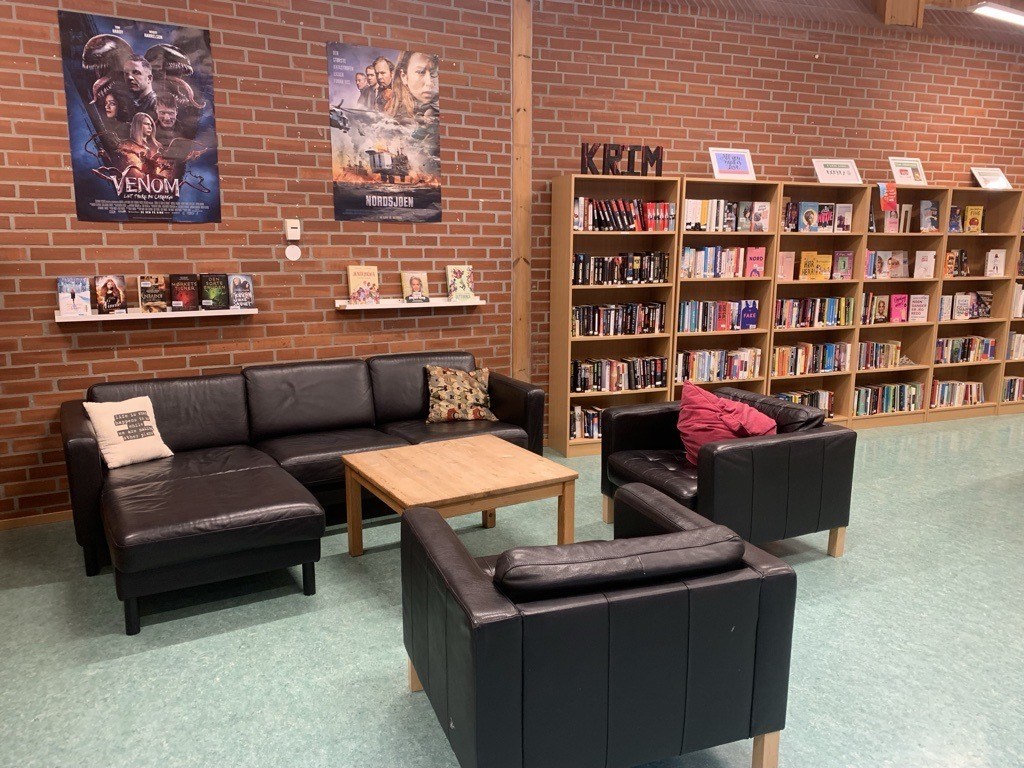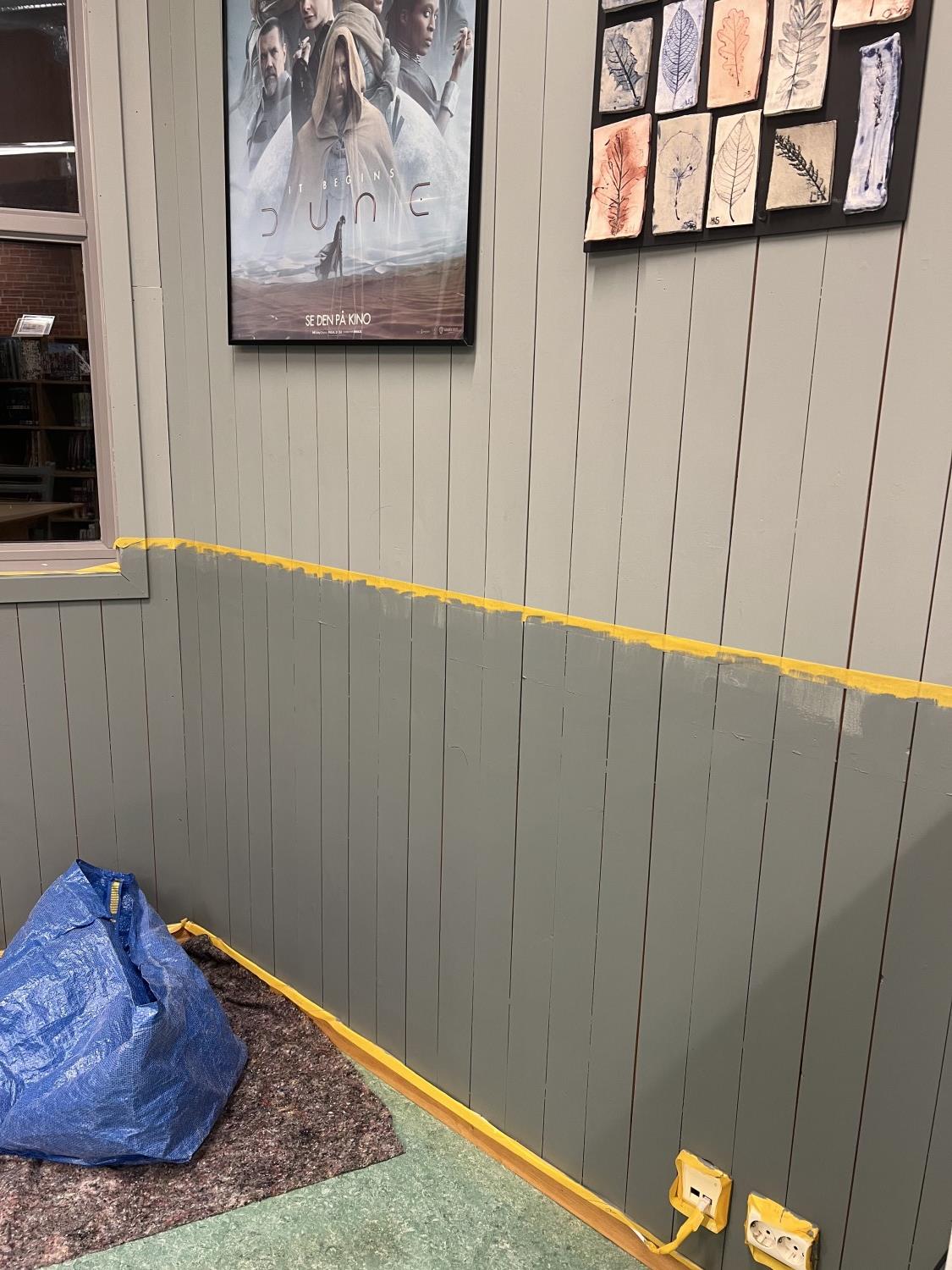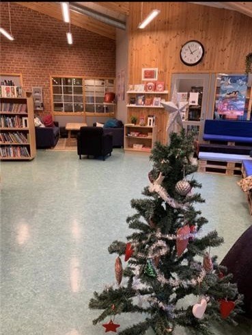Sammen med gode lærere og fagarbeidere fikk vi inn noen møbler fra andre steder på huset, og biblioteket ble omorganisert. I tillegg ble det noen strøk med maling der pallene hadde stått. Det er flere sittegrupper og arbeidssoner, og et luftig og godt rom å være i. Skulle selvsagt tatt flere FØR-bilder, men tenkte på det for sent. Så her er en blanding av julepynting og før, under, og etter-bilder.