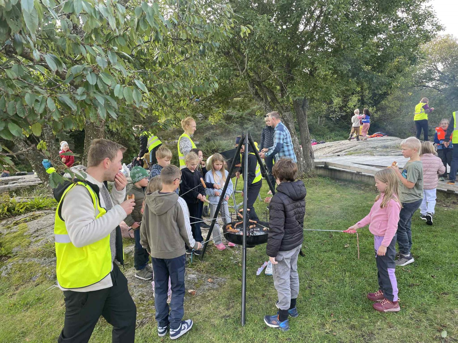 Midt Agder Friluftsråd stilte opp med varme griller og gode hjelpere. Vi er også veldig takknemlige for at de legger til rette for sponset buss til hele skolen, slik at vi hadde mulighet til å få til en tur som denne i dag. Prosjektmidlene til Friluftsbussen har de fått tildelt av «Sparebankstiftelsen Sparebanken Sør». Et supert samarbeid med tanke på både planlegging og gjennomføring.