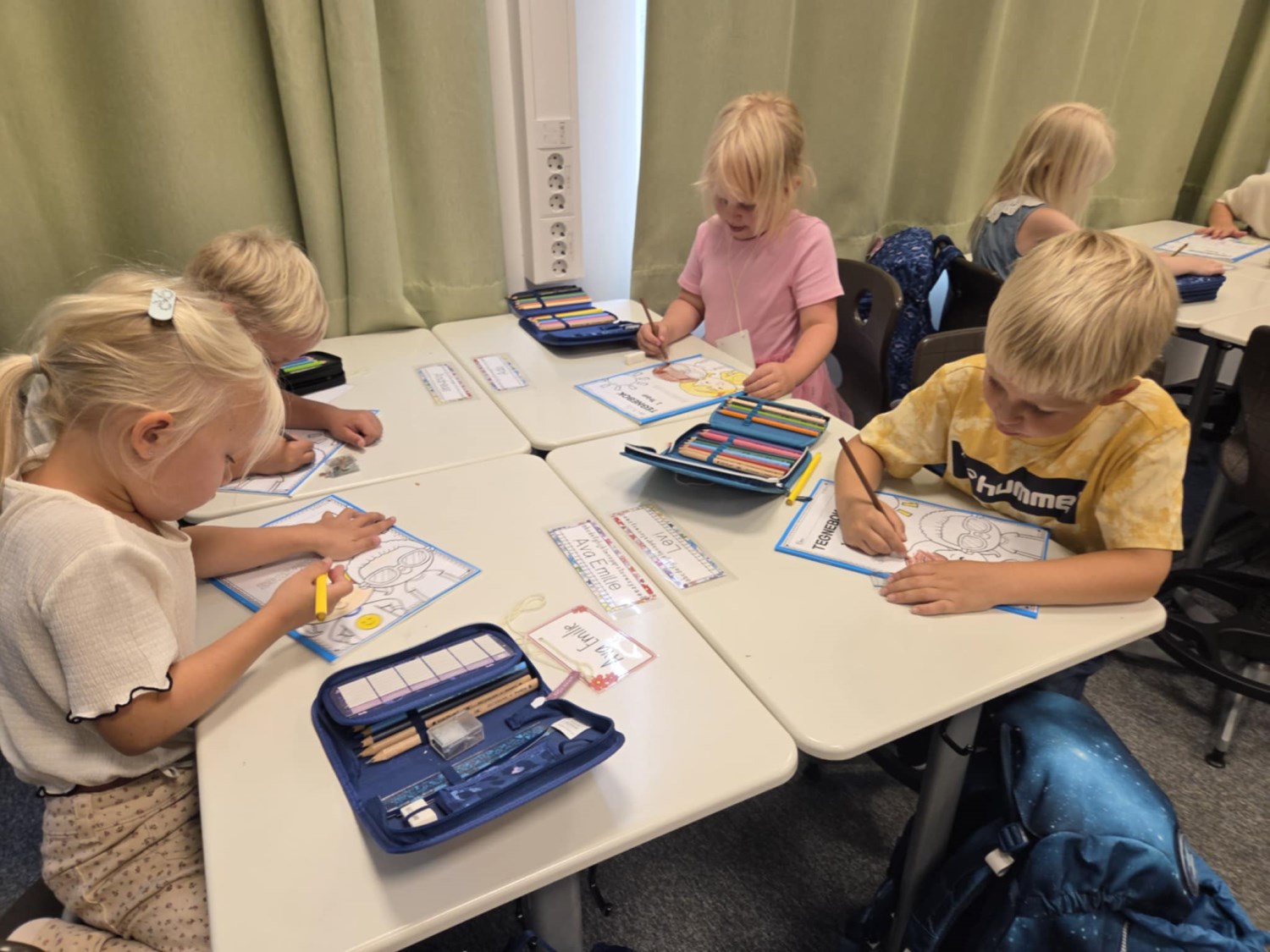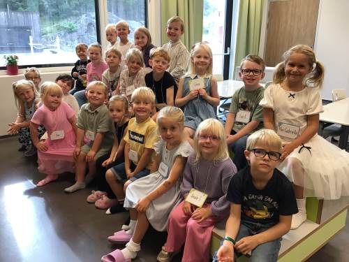 1. trinn har jobbet med "meg og klassen min". Vi har jobbet godt med rutiner, og har god struktur på hverdagen. Det har vært mye fokus på å leke med de i klassen min, og hva alle heter. Vi har lært mange bokstaver, og blitt forfattere. Tenk at etter en måned på skolen har jeg skrevet en bok om meg selv. Det er en flott gruppe elever, med lærelyst og nysgjerrighet.