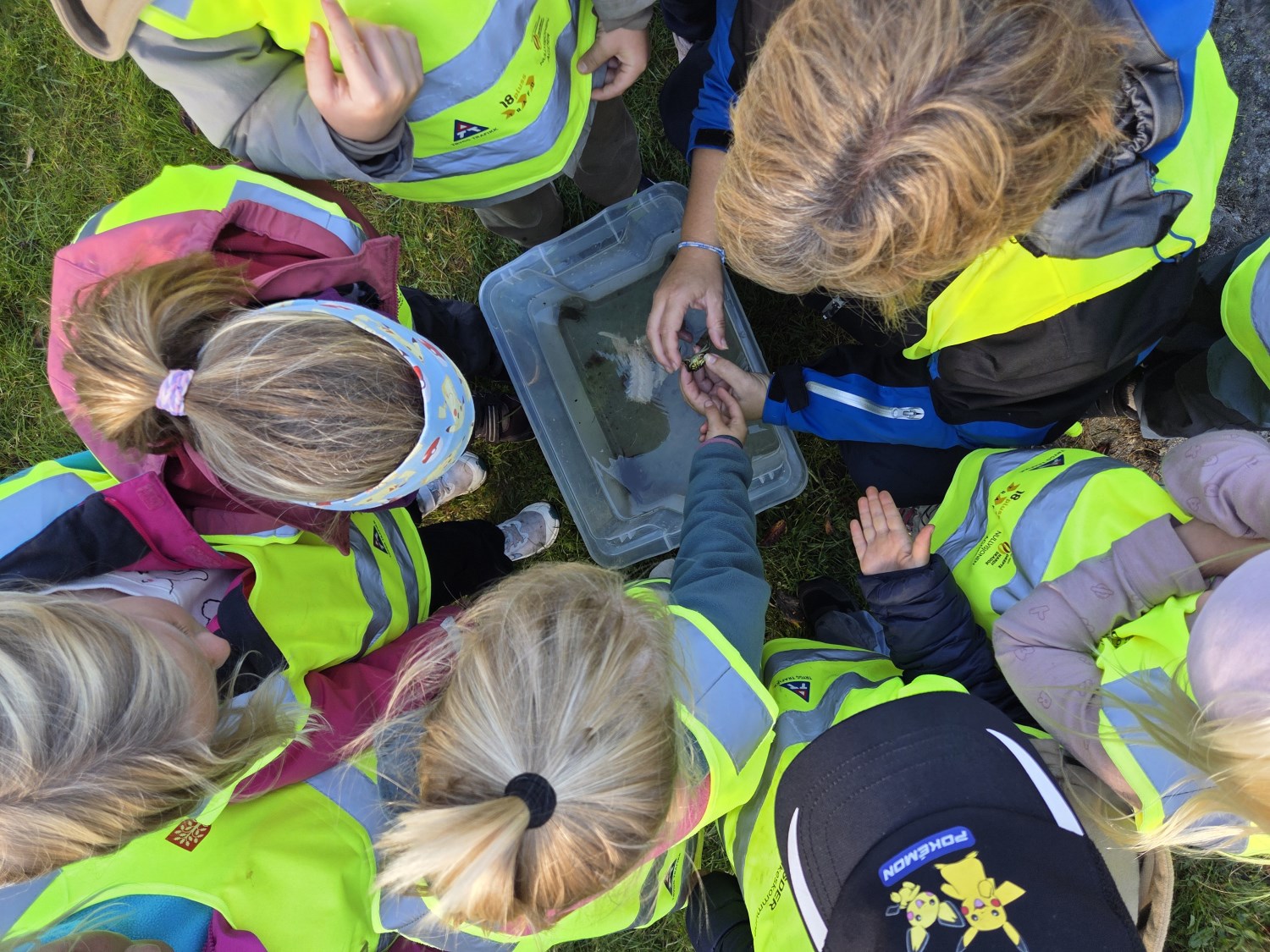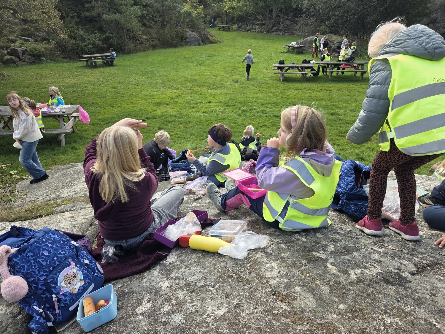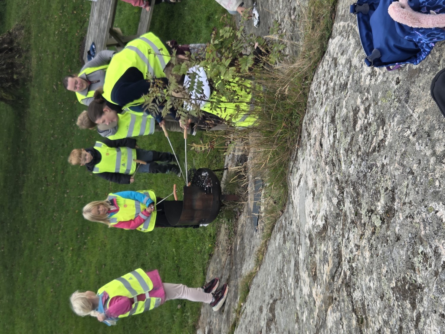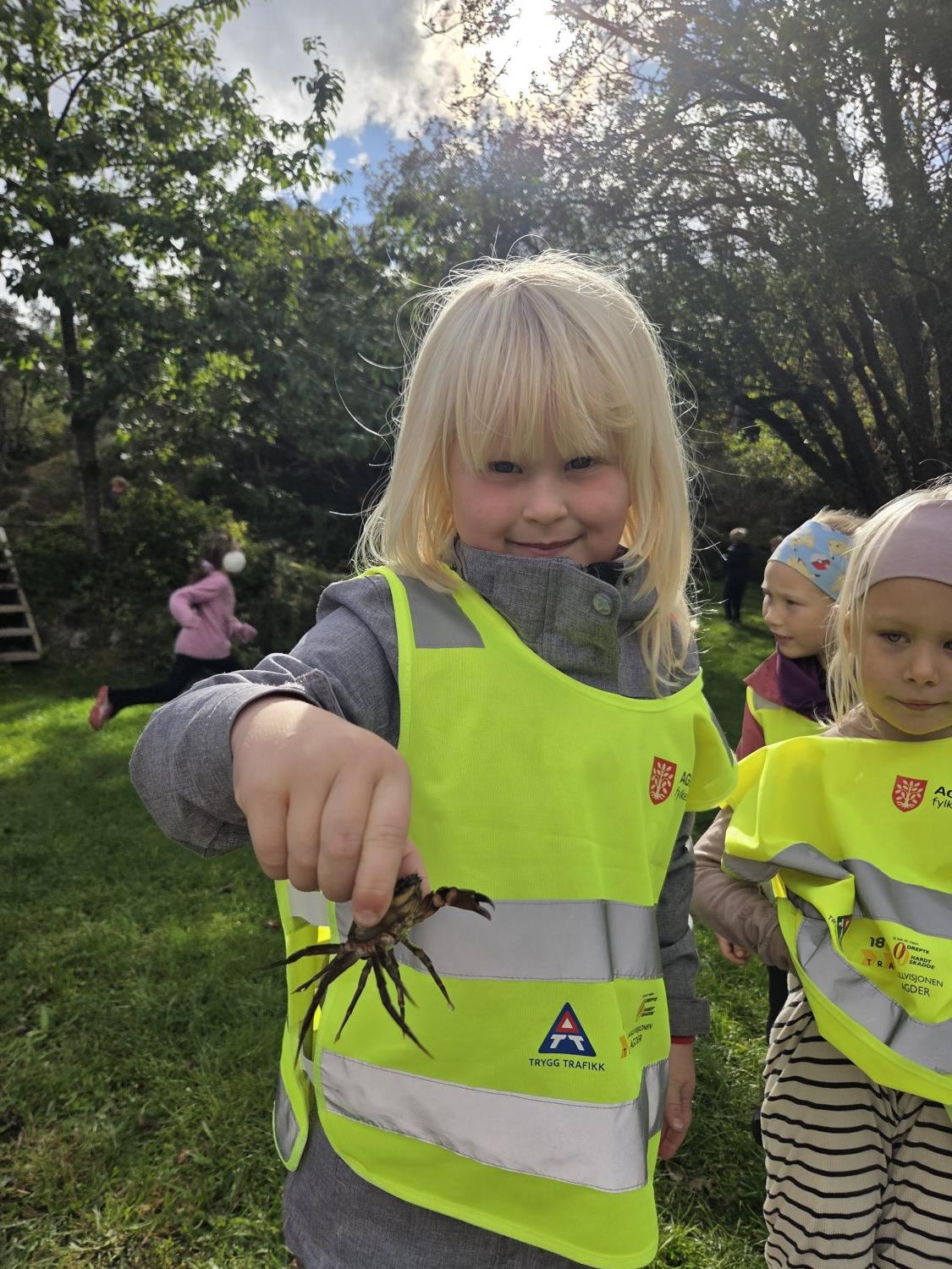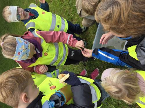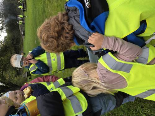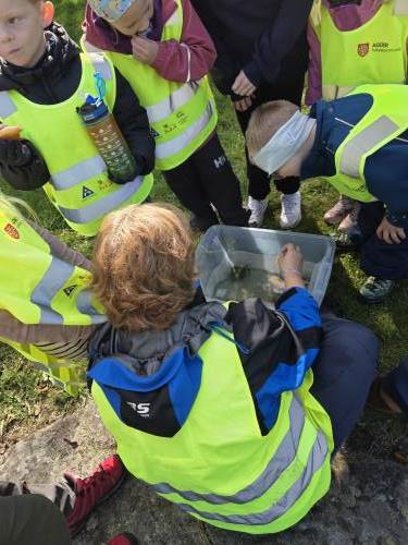 Vi startet med vår første busstur som klasse. Framme i Helleviga hadde vi finne aktiviteter sammen med 5. trinn. Det ble mye tid til den viktige frileken, og samhold i klassen. Vi fyrte opp bål, og koste oss med pølsegrilling. Vi fikk også utforske krabbene som de større barna hadde fisket. Og flere av elevene opplevde gleden av å mestre noe som var litt skummelt - det å holde en krabbe.