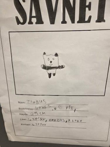 Vi la en plan sammen, og startet med å lage savnetplakater. Isammen lagde vi en plakat, og alle elevene lagde sin egen i klasserommet. Det var stor grad av glede og mestring, dette ga skrivingen en mening. Vi var rundt i noen klasser og fortalte, vi hang opp plakater, og hele skolen ble engasjert. Hvor var Timbus?