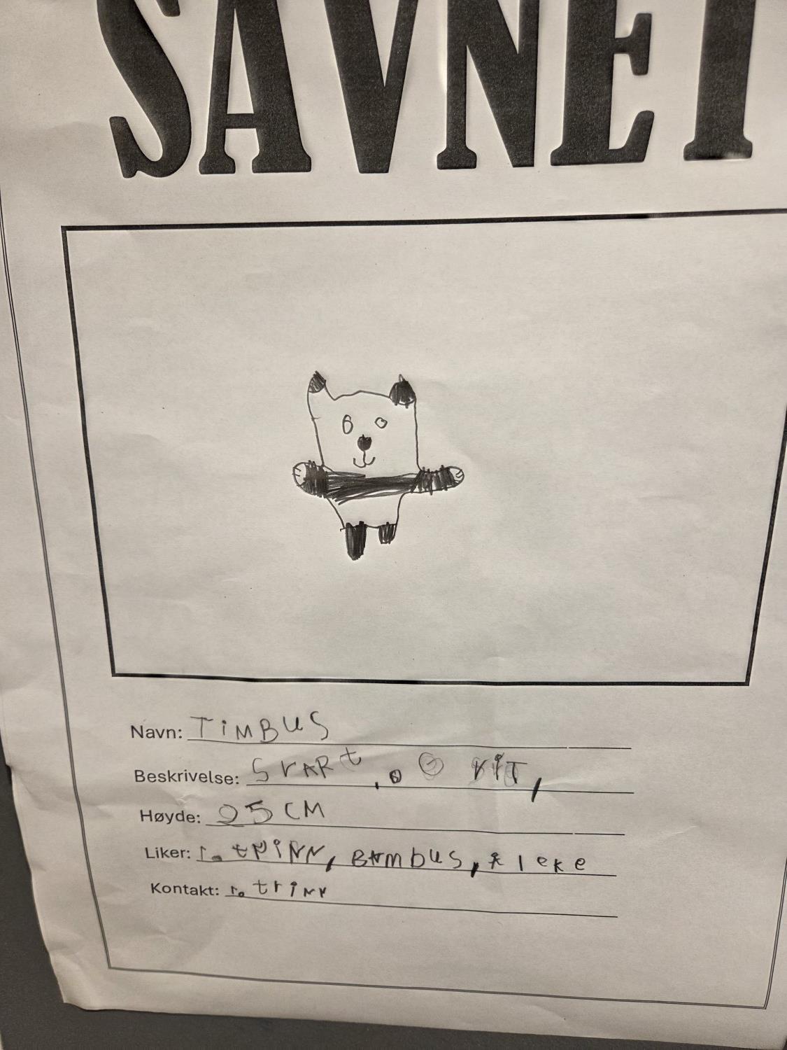 Det var en spent stemning i 1. trinn på mandag morgen - Timbus var borte! Den forsvant fra sekken i SFO-tiden på fredag, hva gjør vi nå.