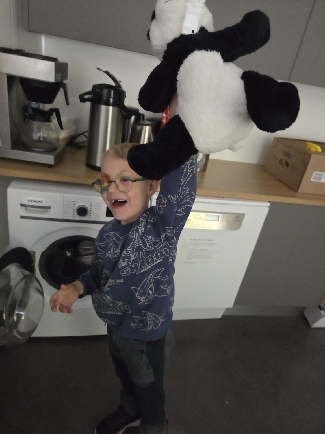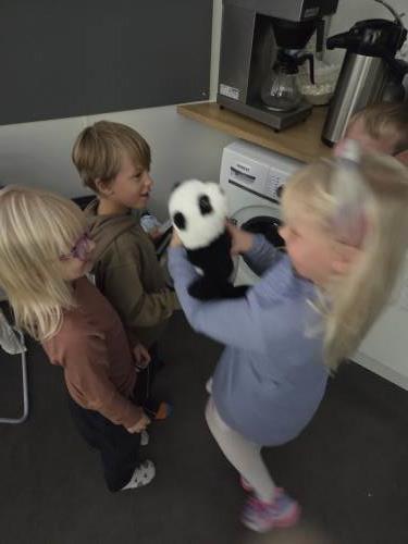 Etter mye lesting fant vi Timbus i vaskemaskinen på mat og helse. Vi hadde mange gode tanker om hvordan han hadde kommet seg dit. Han hadde også blitt tørr :) Det var godt at vi fant Timbus.