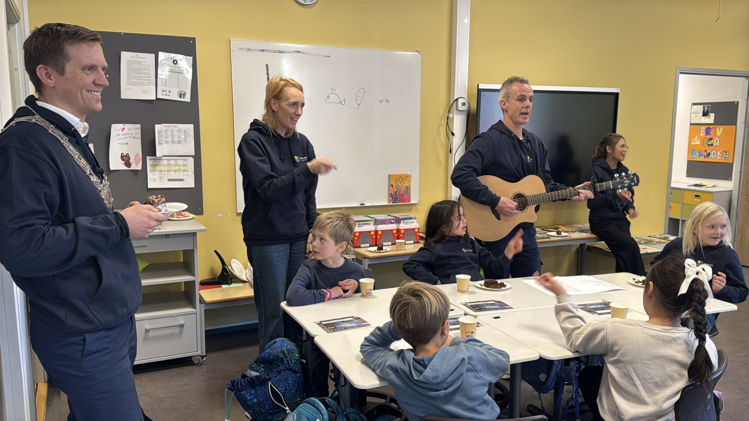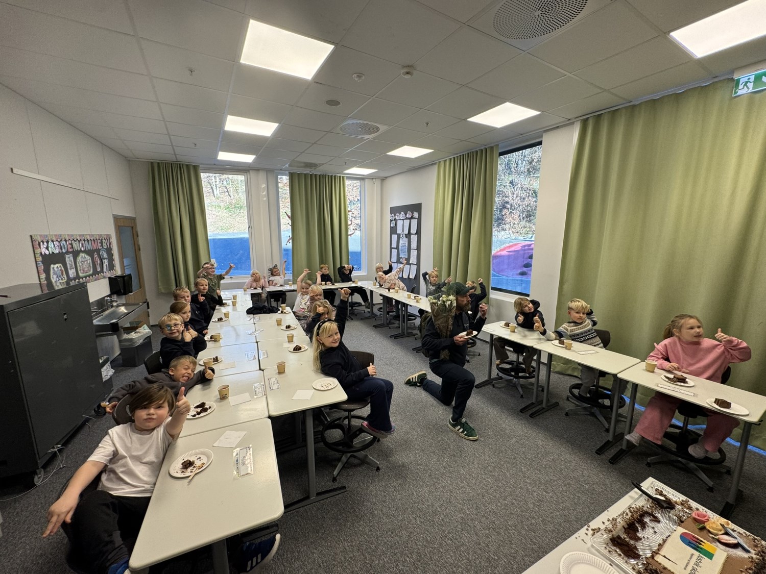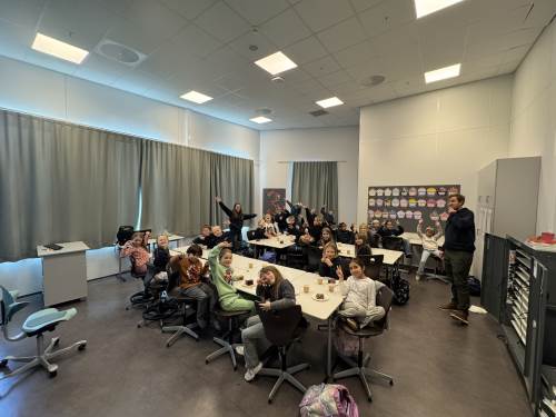 Ordføreren fikk se den fine kunsten elevene har laget på veggene, og han fikk både kake og sang på sitt besøk i klassene. Noen autografer måtte han også skrive, og ga oss mange gode tilbakemeldinger som skole.