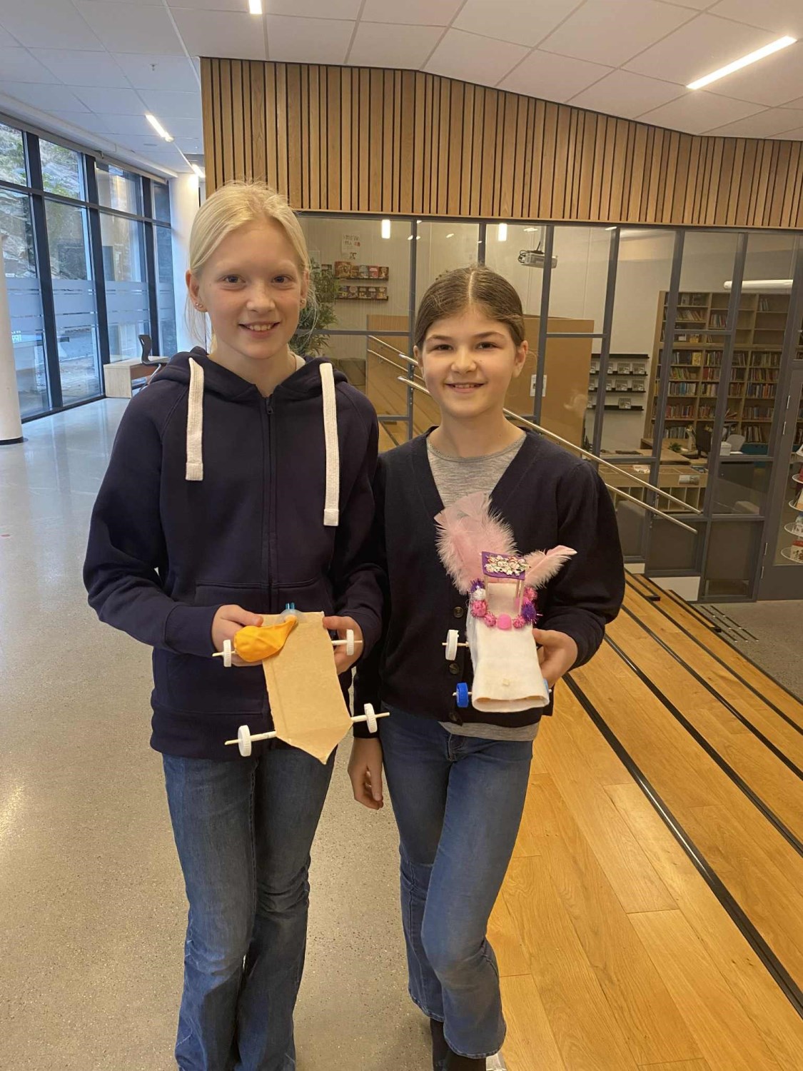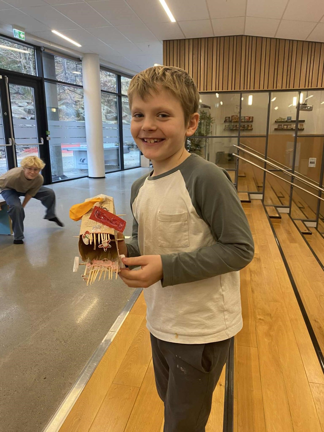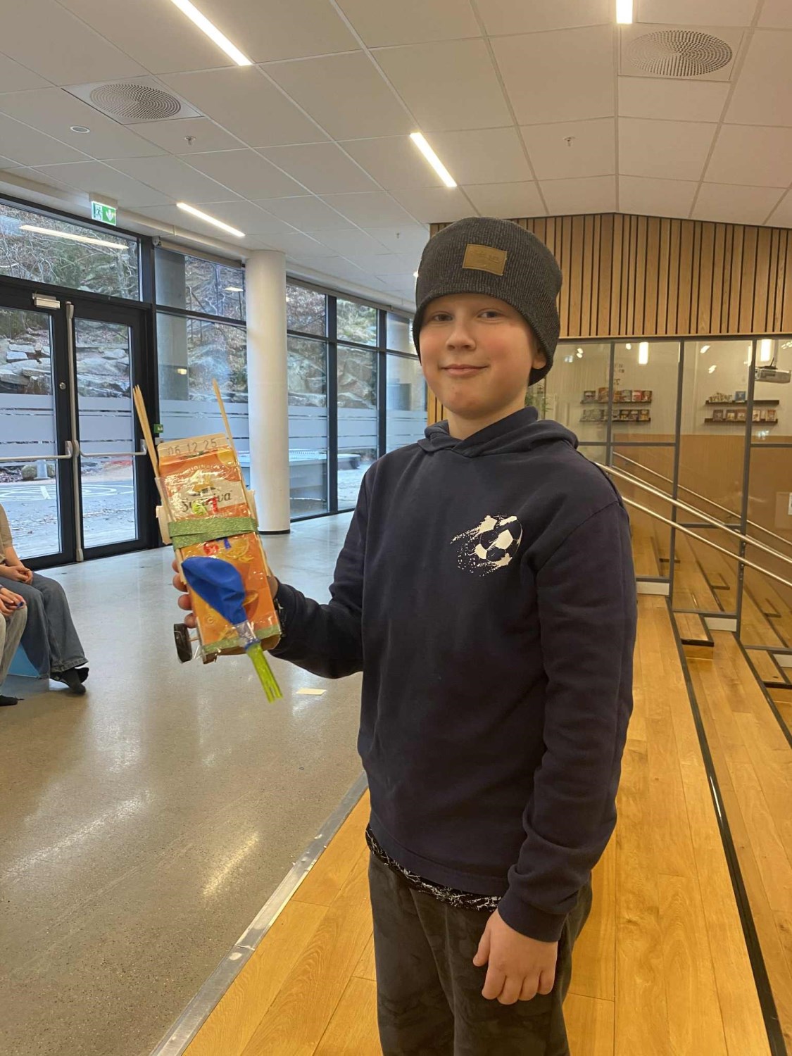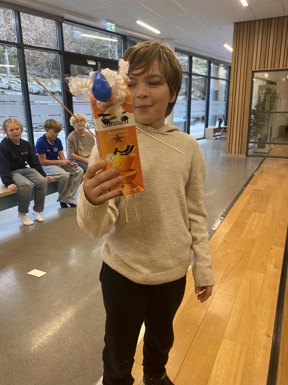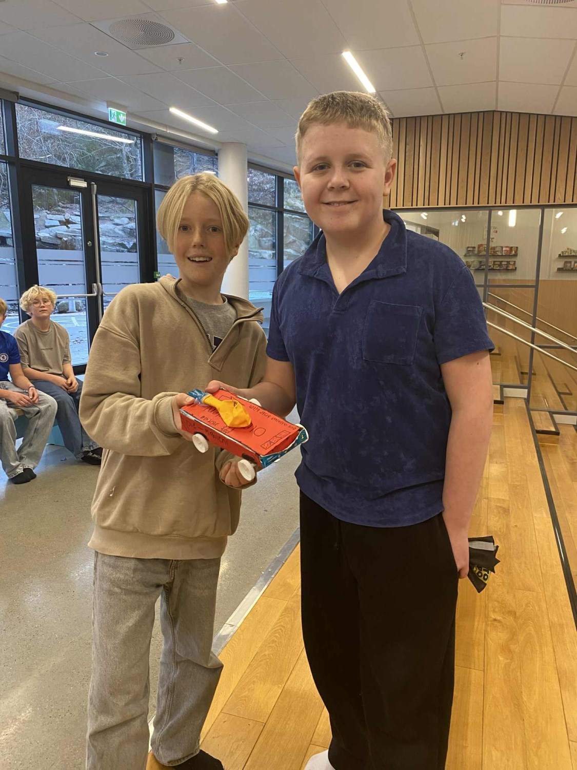 I dag har elevene på 6.trinn laget kule kartongbiler. Det ble mange flotte og kreative resultater, og den ene bilen utmerket seg ved å kunne kjøre mangfoldige meter. Et skikkelig gøy prosjekt!