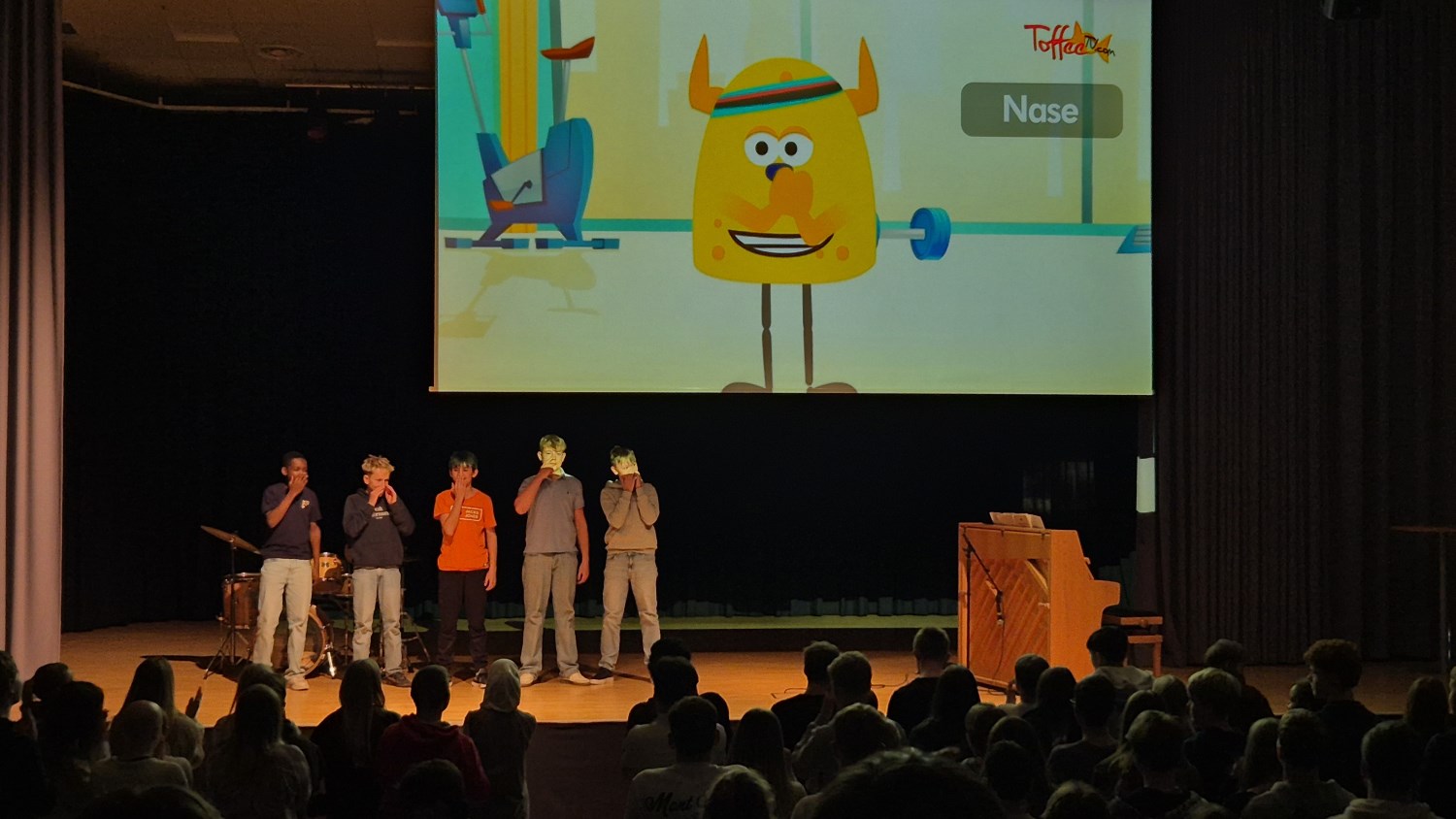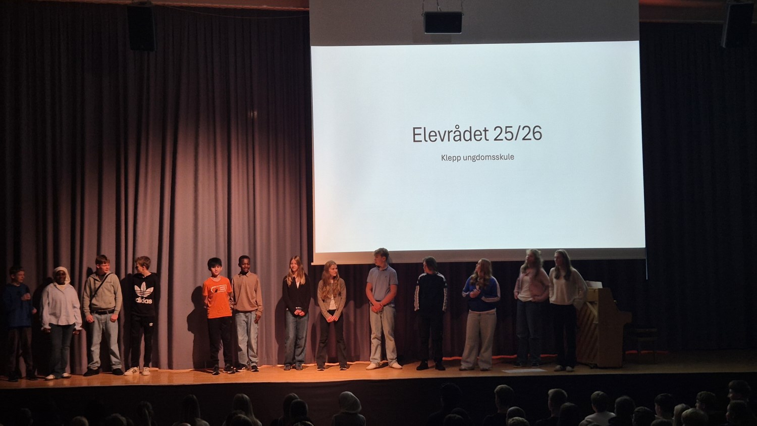 Flotte elevinnslag med trommer, piano og dans, presentasjon av elevrådet, pengegåve og kåring etter Sorpeløpet 2025, var noko av det som blei presentert under storsamlinga på Klepp ungdomsskule siste onsdag i oktober.
