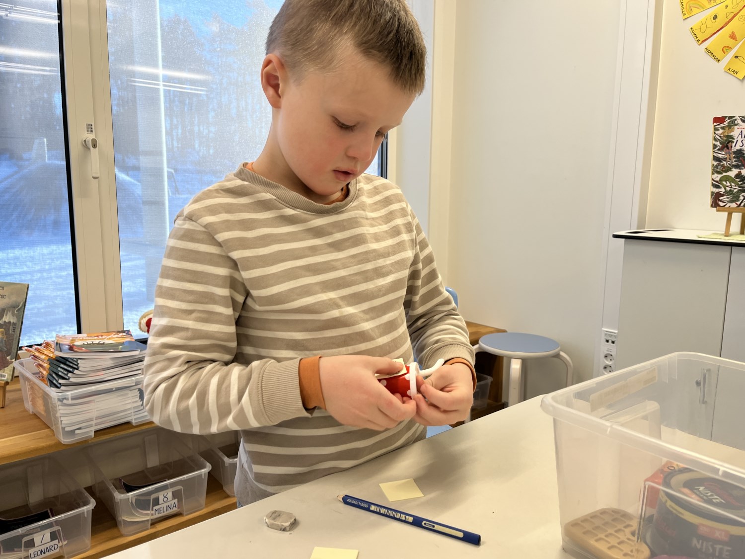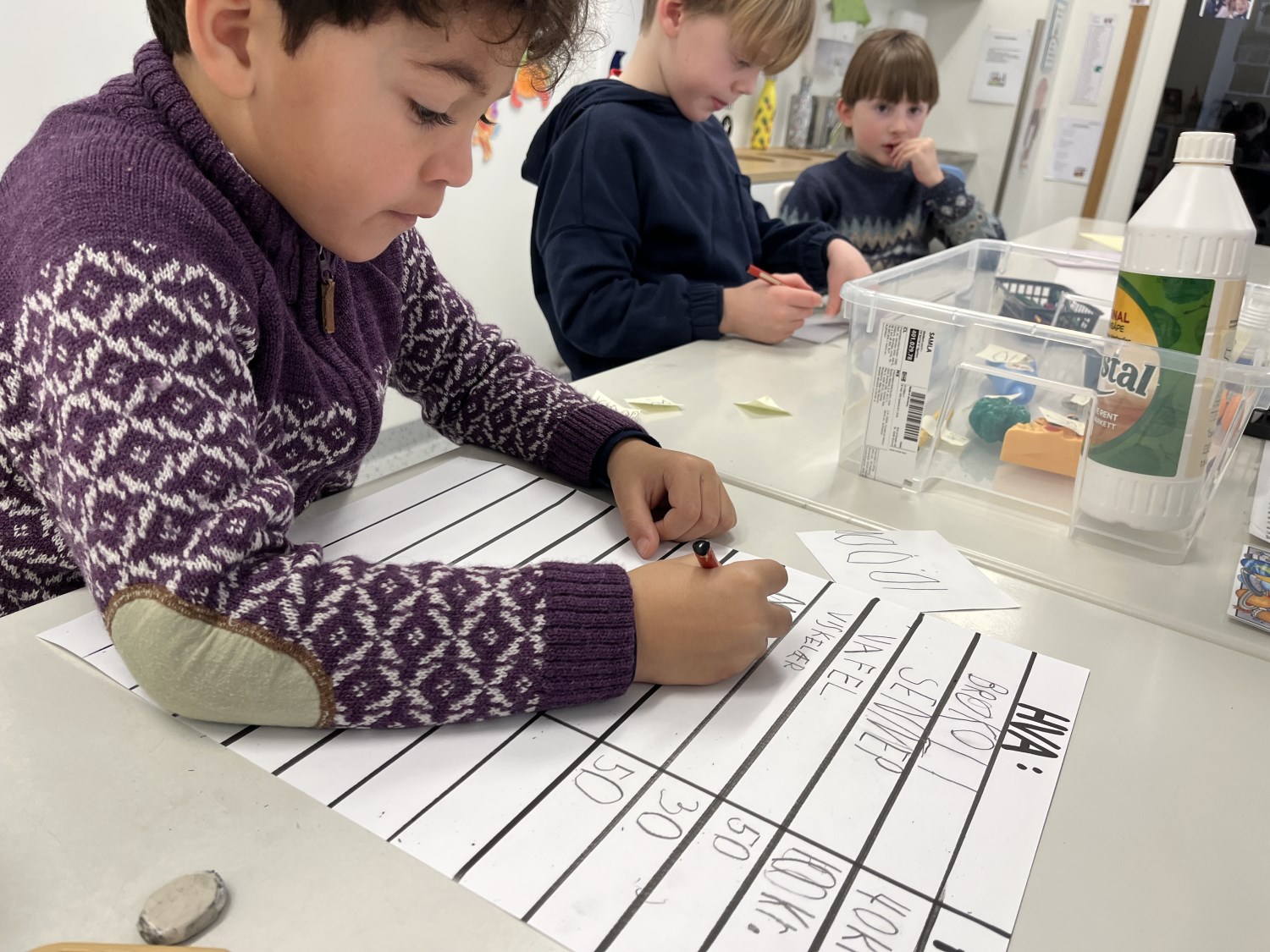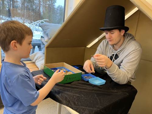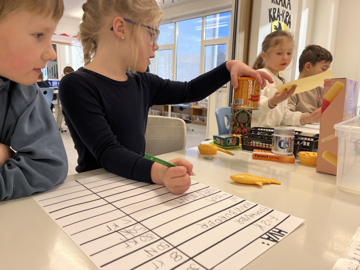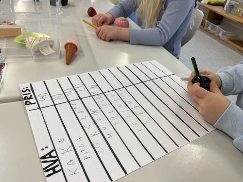 Barna viste stort engasjement og kreativitet. Det ble skrevet prislister og plakater. Når varer skulle kjøpes måtte de regne og veksle, og mange trengte en tur i banken for å låne mer penger. Noen husket faktisk på å komme tilbake til banken med penger de hadde lånt:) Det var både gøy og lærerikt å leke butikk!