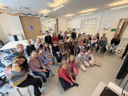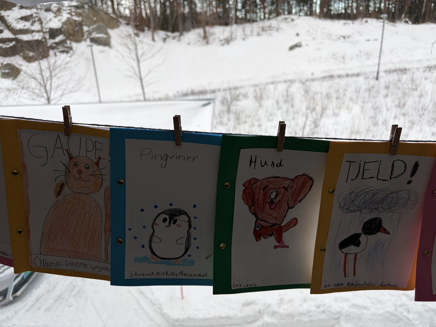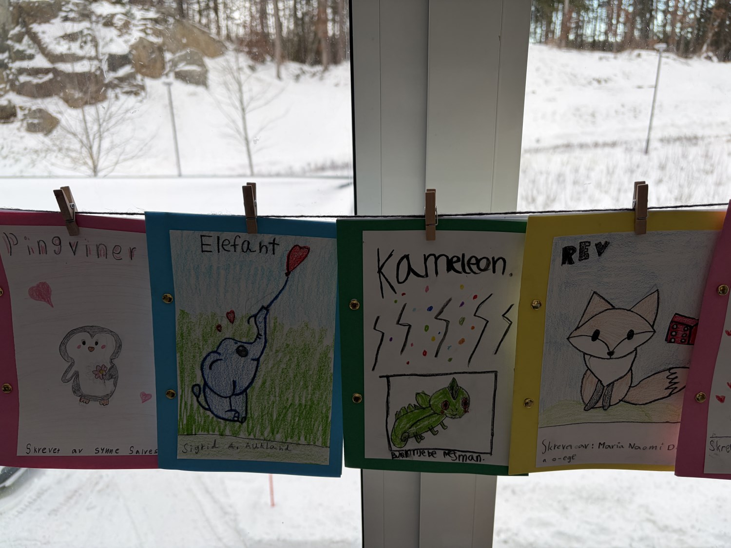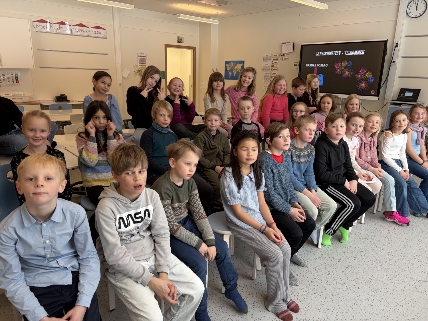 Turid Thorsen var på plass og rommet var pyntet med ballonger. Det var skikkelig god stemning i 3. trinnsrommet, da sjefen selv, selveste rektor Oddbjørn kom inn døra. Oddbjørn var buden for å klippe snora og få introdusert alle 30 faktabøkene, laget av 3. trinn. Hvert barn reiste seg når tittel og forfatter ble opplest av Turid. Barna fikk stolt motta applaus av rektor og resten av klassen. Videre feiret vi med kake og "Kompani Ord". En velfortjent avslutning på 2 ukers hard jobbing.