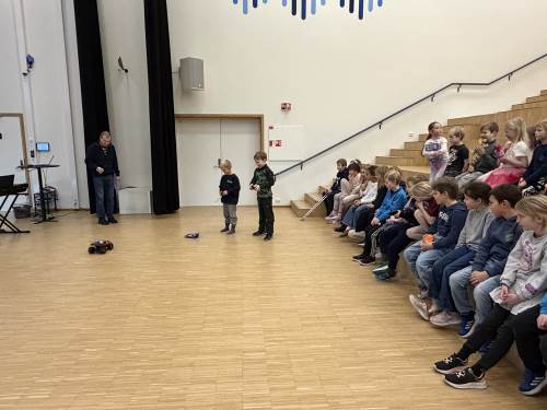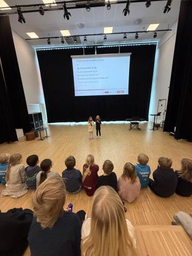 Det ble en kjempefin åpen scene for elevene på 2.trinn. Det var flere elever som utfordret seg selv med å enten synge en sang, danse eller spille et instrument foran det andre elevene på trinnet. De var supertøffe og gjennomførte med stor stil. Det var også en mulighet til å vise frem en leke eller noe annet som betydde noe for eleven. De måtte snakke litt foran publikum med Henrik, som var programleder for anledningen. Dette skal vil gjøre igjen!