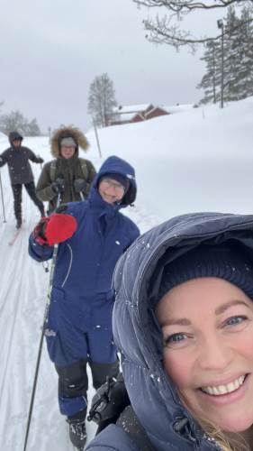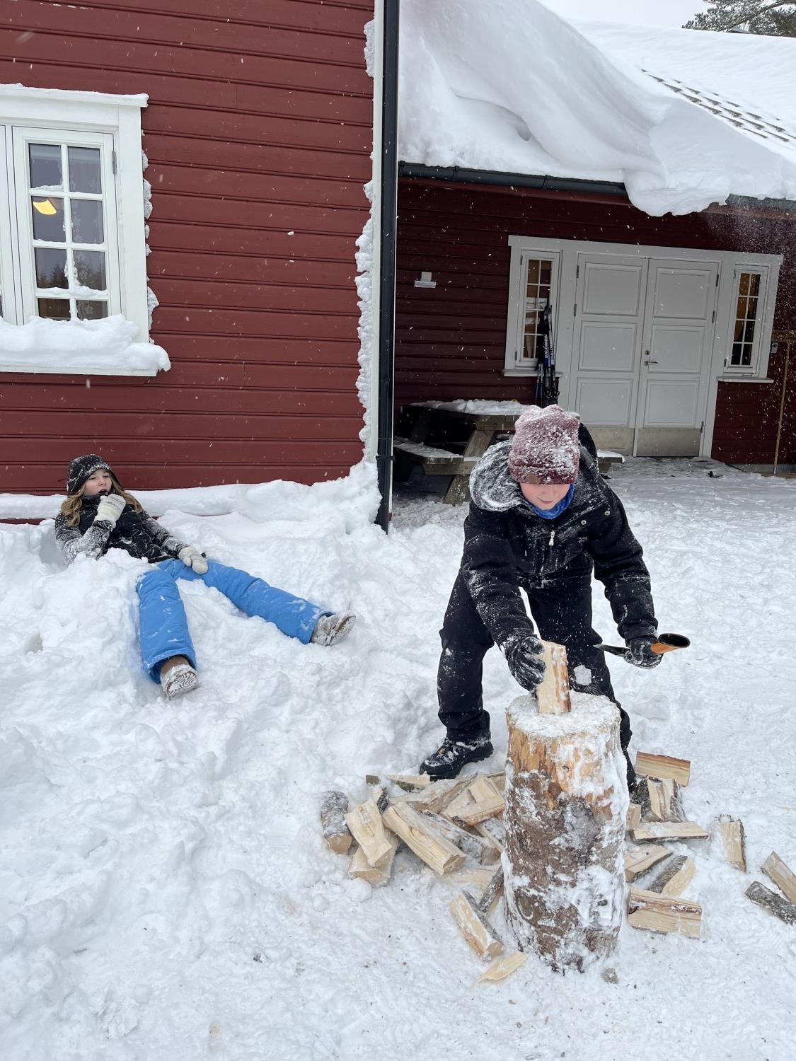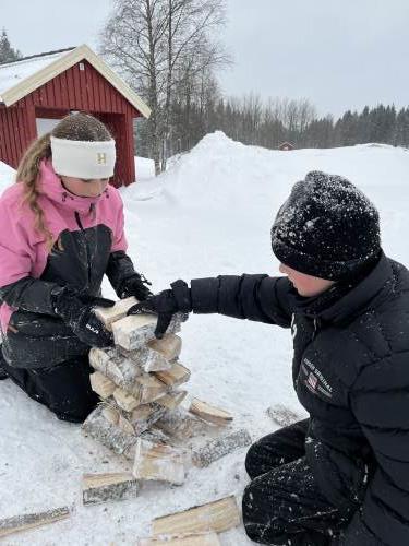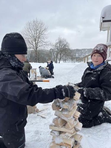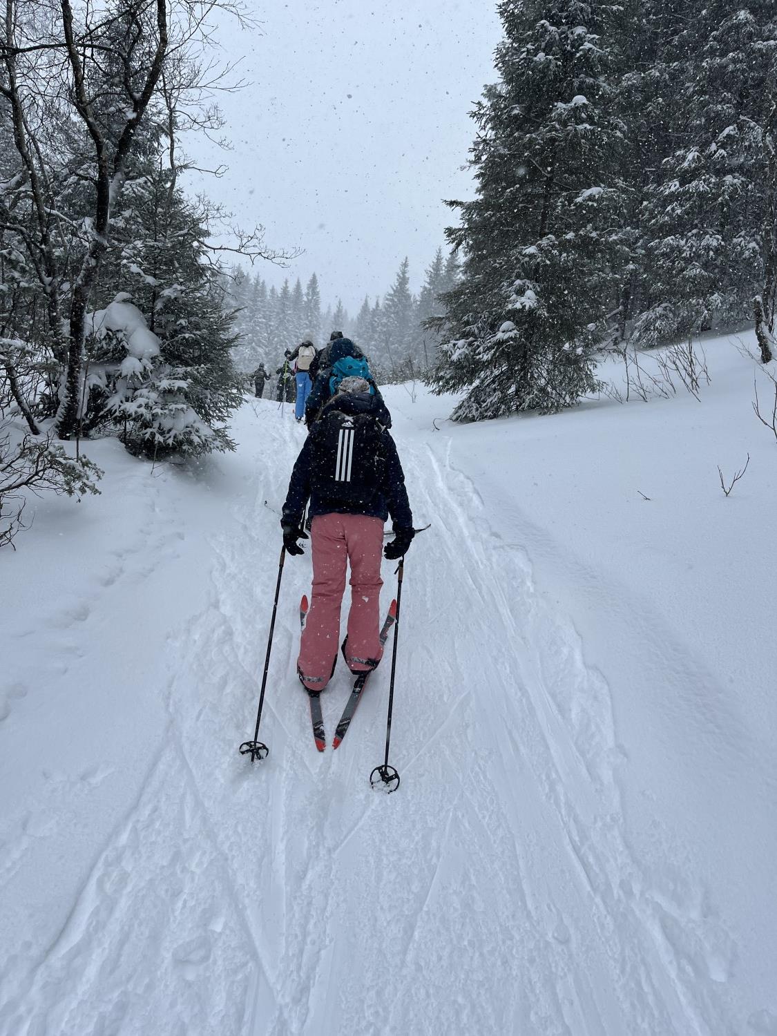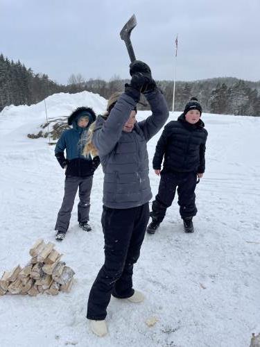 På onsdag gikk vi på ski til bondegården, Tjomsås. Tjomsås er en større gård med mange kyr, men også sauer og høner. På vei dit delte vi oss i to grupper, hvor den ene gikk en litt lenger tur, men alle gjennomførte over 5 kilometer totalt denne dagen.