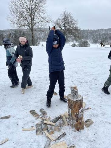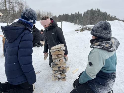 På tirsdag var det igjen på med skiene og vi gikk en ny tur til et sted som heter Røyneland. Der var det skiskyting, skihopping og alpint med langrennsski som stod på programmet. Både mandag og tirsdag spiste vi lunsj i en lavvo i nærheten av leirskolen.