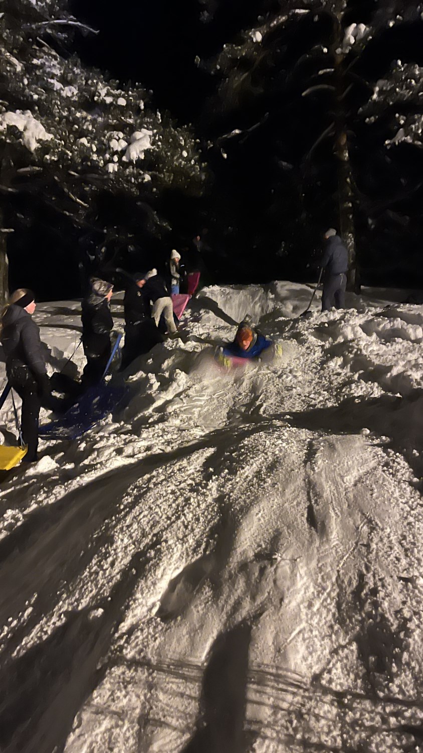 På mandag gikk vi ei løype i nærheten av skolen. Opplegget var tilpasset slik at "ekspertene" fikk gå flere runder, mens andre fikk litt mer hjelp og tips. Generelt var nivået høyt og alle fikk det til. På kvelden var det refleksløype med truger og lommelykt.