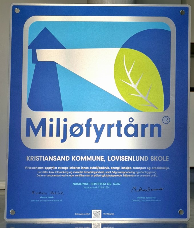Lovisenlund skole ble miljøsertifisert som Miljøfyrtårn i juni 2024.