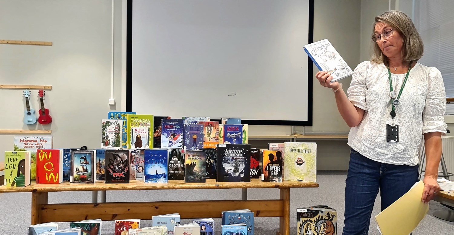 Onsdag presenterte Hilde og Kaia fra Kristiansand Folkebibliotek et utvalg høytlesningsbøker for alle ansatte på Lovisenlund.