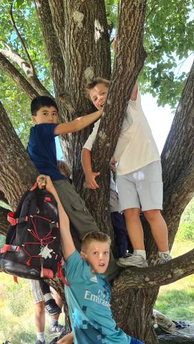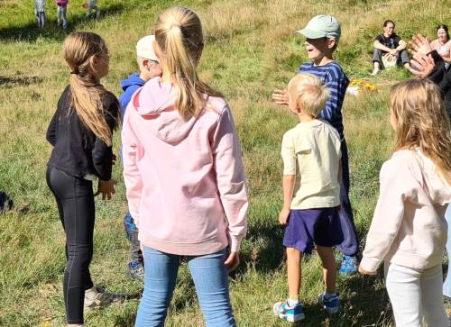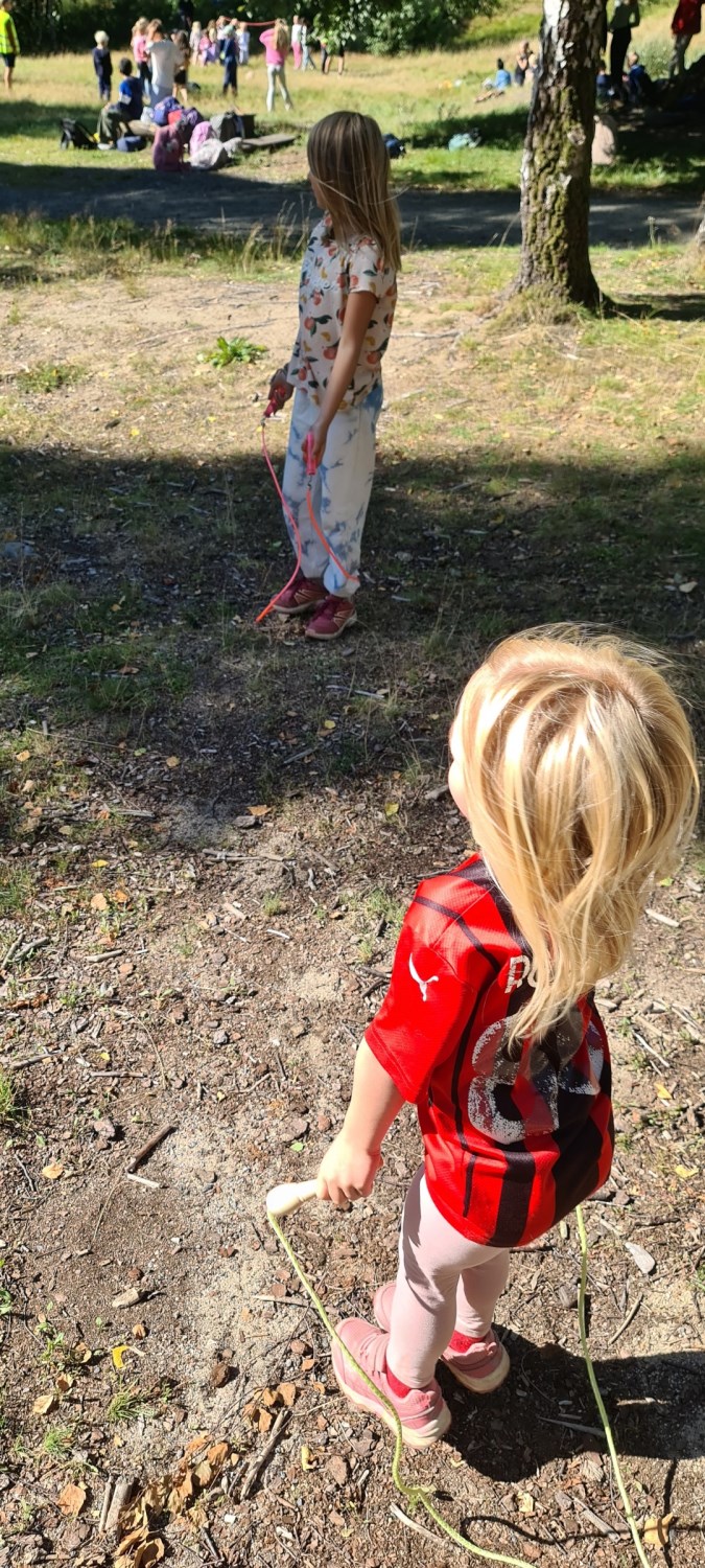Fadderne på femte hadde planlagt aktivitetene godt, og tatt med seg utstyr hjemmefra. Her var ulike ballspill, hoppetau og slengtau, bocca og naturkunst, rødt og grønt lys, gjemsel, tikken og klatring, for å nevne noe.