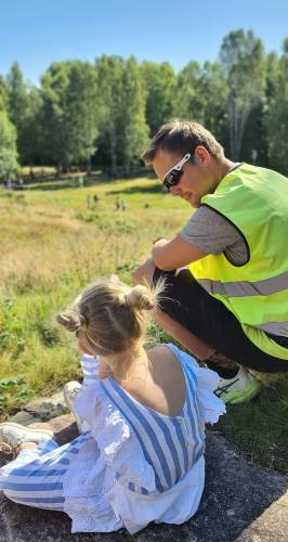 Koselig å spise god niste sammen i sola. Gøy å spille på instrumentene. Moro å finne modne bjørnebær. Mange voksne. Flotte timer for faddere og fadderbarn som blir mer og mer knyttet til hverandre!