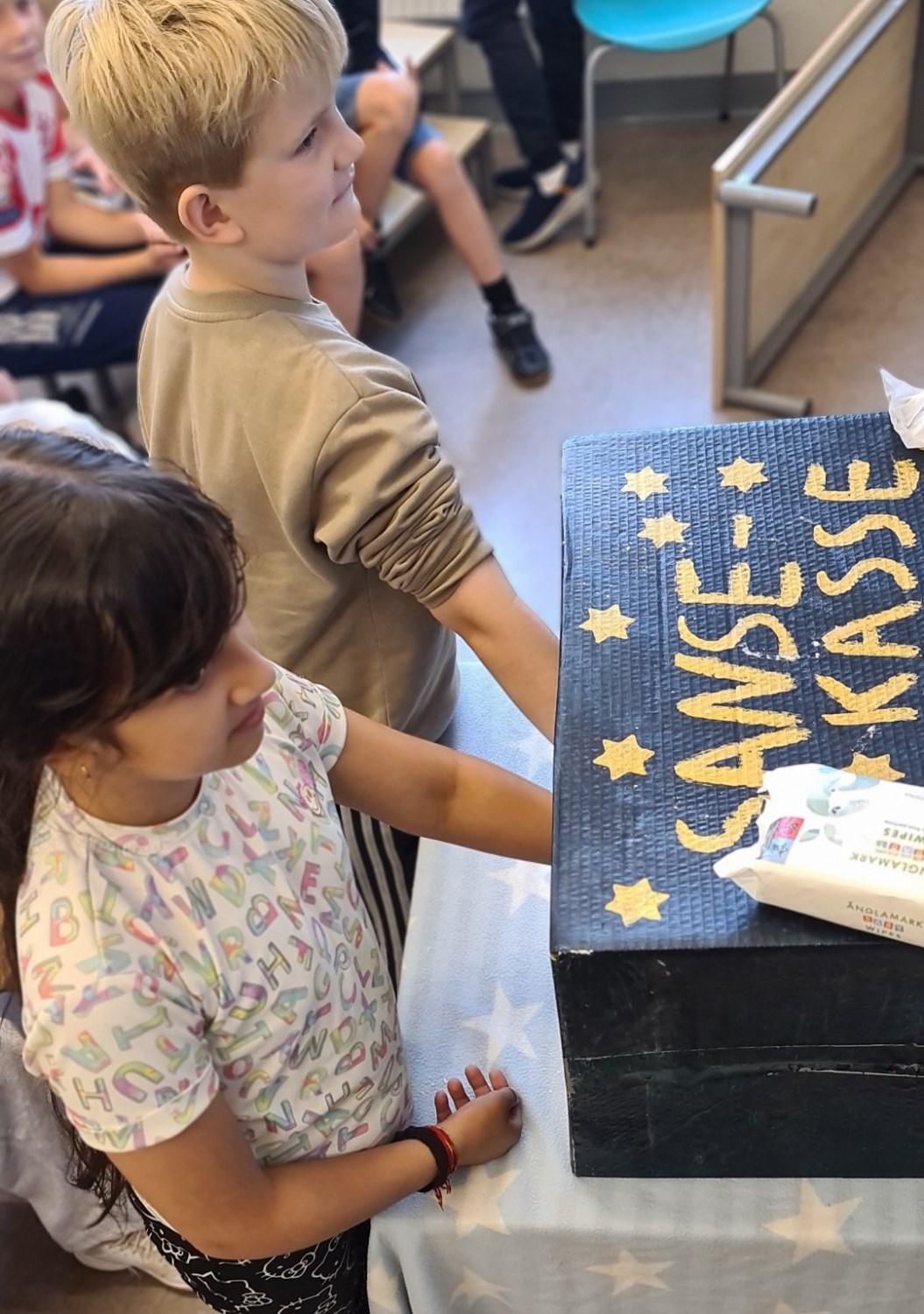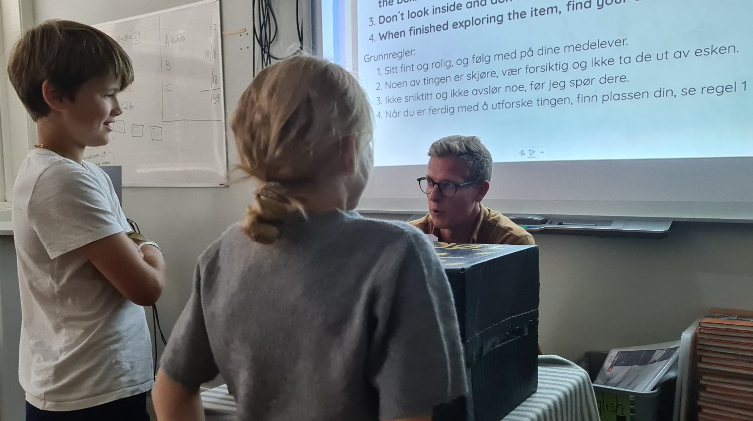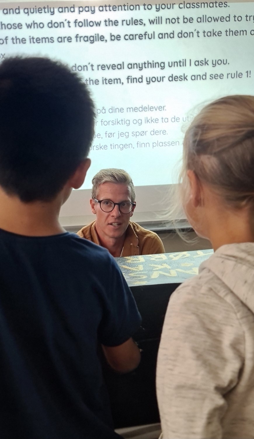 Sammen med læringspartner stakk vi ei hånd hver inn i den svarte sansekassa. Hva kom vi til å ta på? Kom vi til å klare å fortelle hvordan det vi tok på kjentes ut? Ville vi klare å gjette hva det var? Og til sist, ville vi få til å si det riktige ordenstallet på det vi tok på og skrive det på engelsk? Ville vi i det hele tatt tørre å prate engelsk hele tiden, og kun bruke et ord på norsk der vi ikke visste hva ordet var på engelsk? Her var det mye å tenke på samtidig..., men gjett hva? ALLE KLARTE ALT SAMMEN!