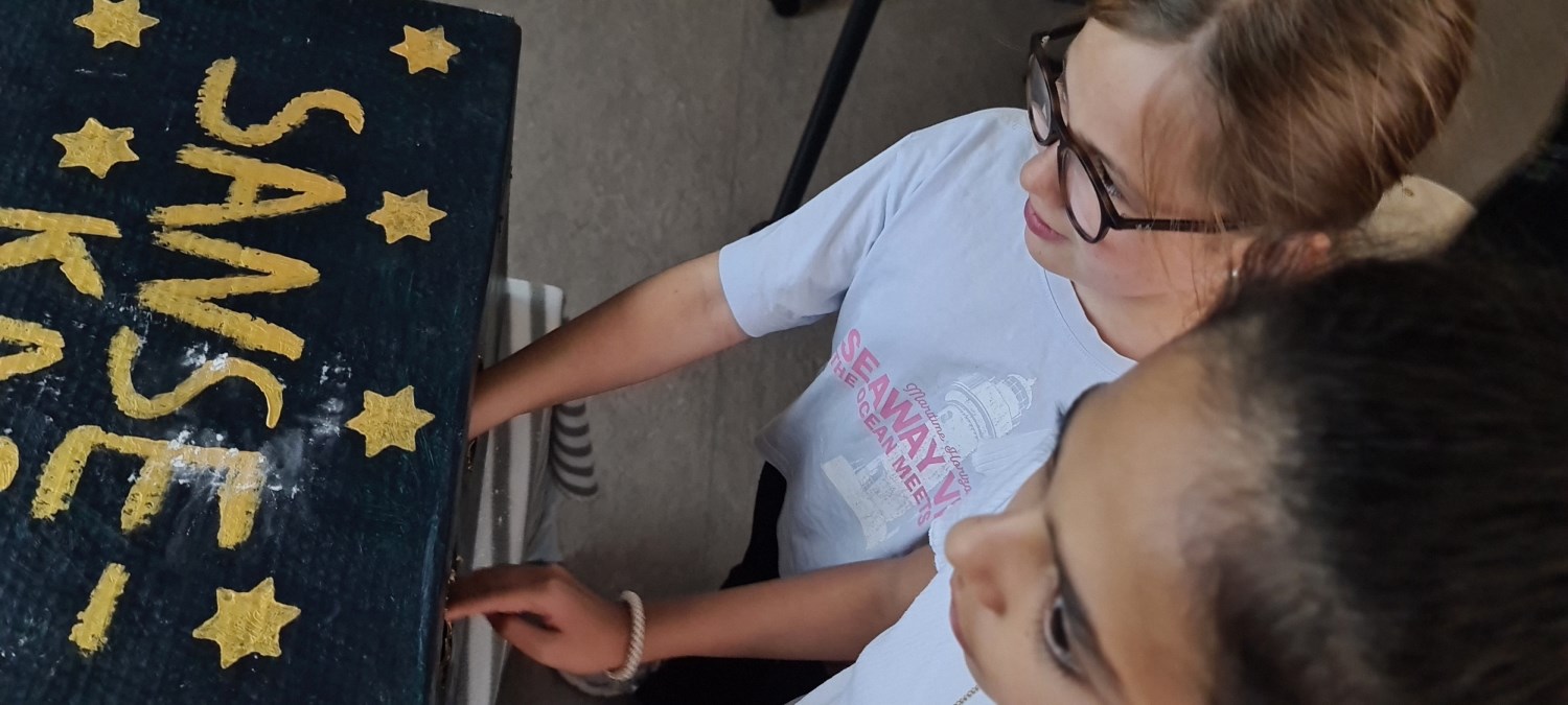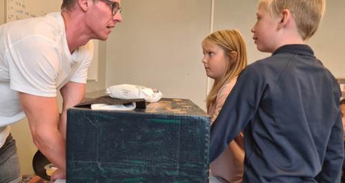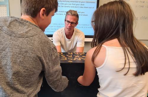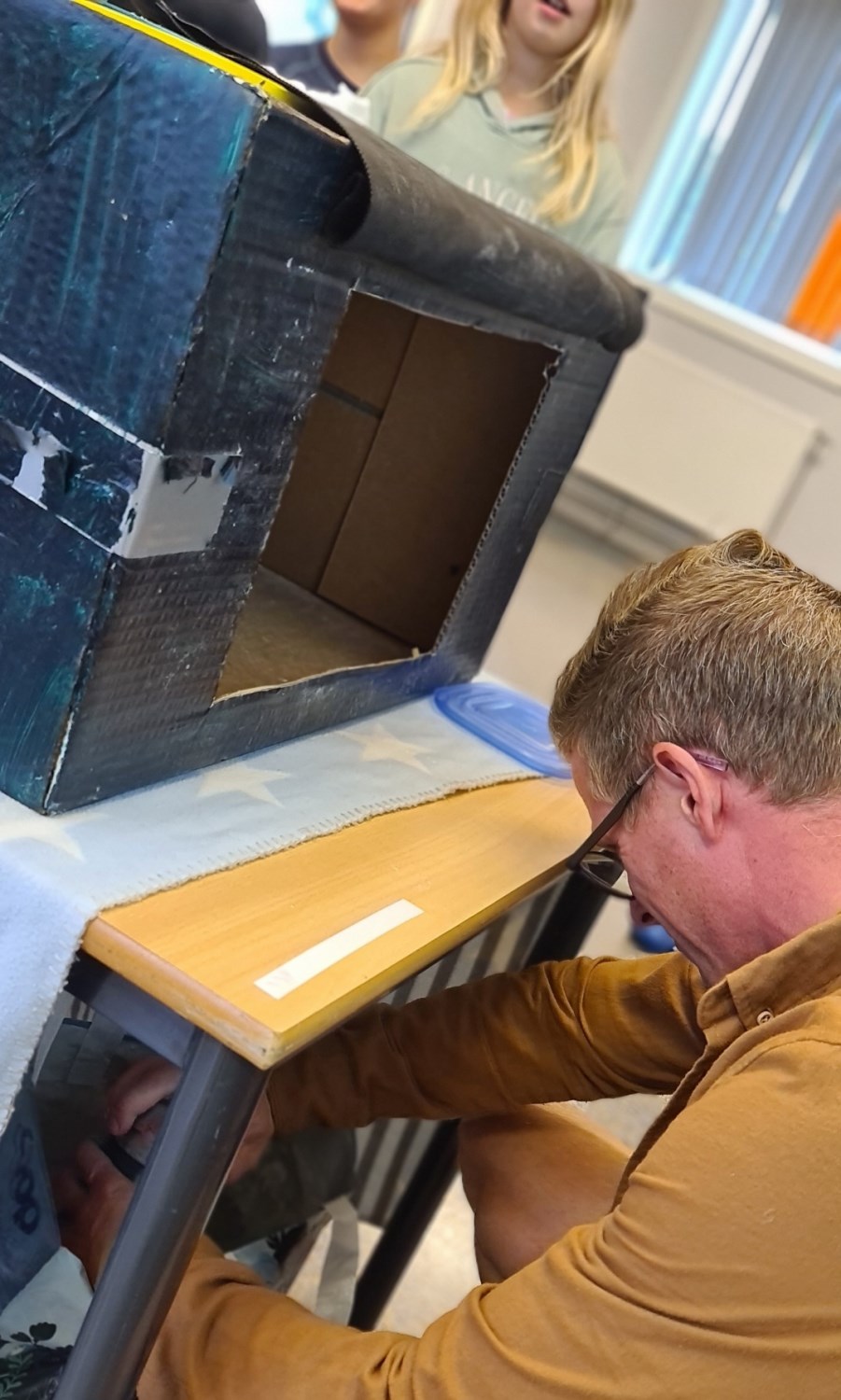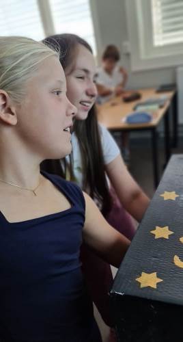 Sammen med læringspartner stakk vi ei hånd hver inn i den svarte sansekassa. Hva kom vi til å ta på? Kom vi til å klare å fortelle hvordan det vi tok på kjentes ut? Ville vi klare å gjette hva det var? Og til sist, ville vi få til å si det riktige ordenstallet på det vi tok på og skrive det på engelsk? Ville vi i det hele tatt tørre å prate engelsk hele tiden, og kun bruke et ord på norsk der vi ikke visste hva ordet var på engelsk? Her var det mye å tenke på samtidig..., men gjett hva? ALLE KLARTE ALT SAMMEN!