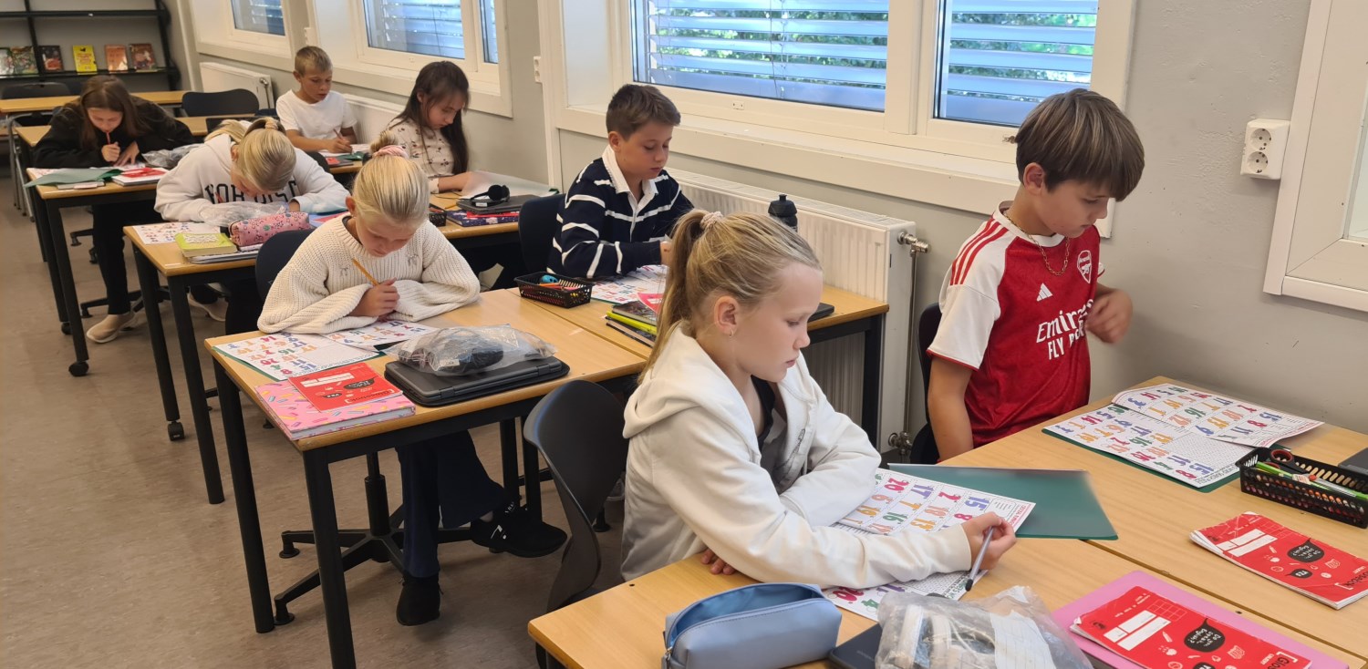 Vi har forresten også bytta farge på engelsk-mappa vår, for i år er den "green". Vi jobber med ordenstallene i et hefte i mappa også, for i år skal vi lære mye mer om også å skrive engelsk! Vi sier det bare: Let's do it!
