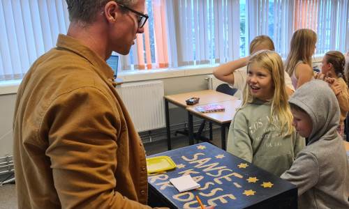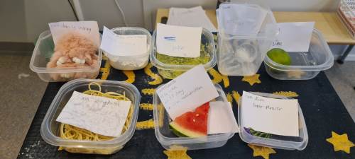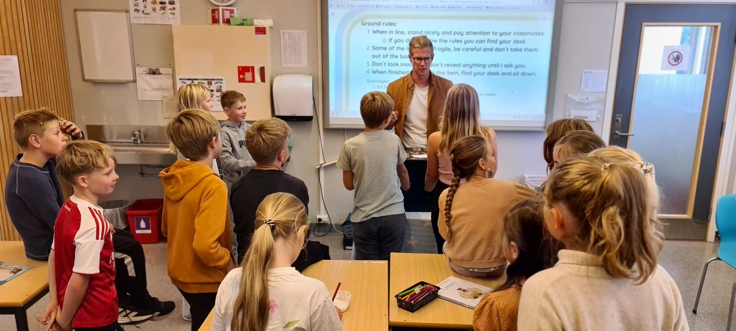 Det var ekstra spennende i engelsktimen i dag! Vi brukte sansekasse for å øve på ordenstallene uten å ane hva vi tok på i kassa...