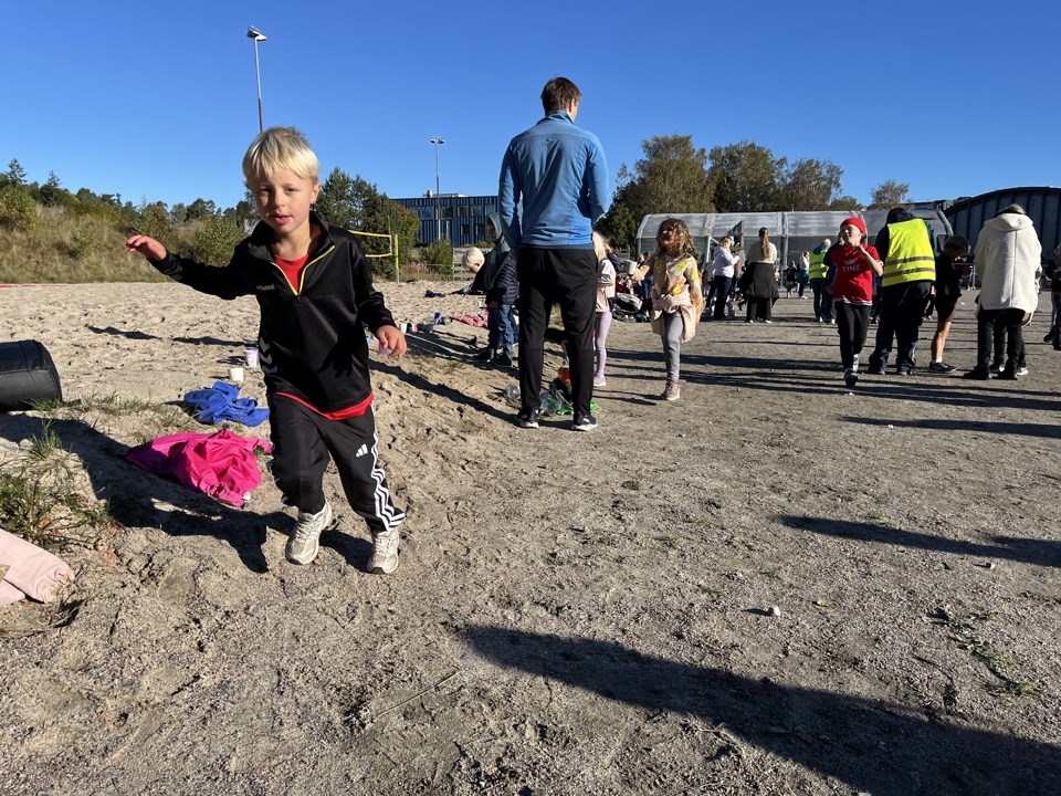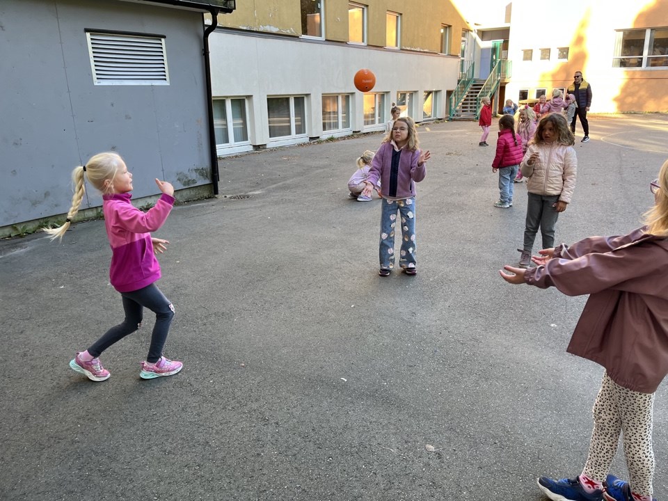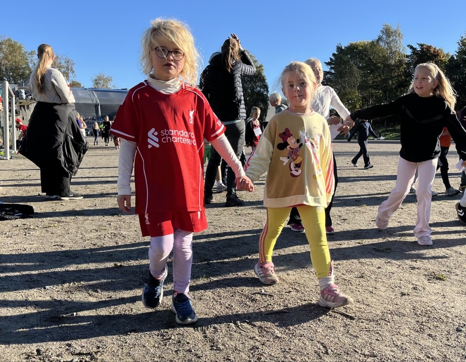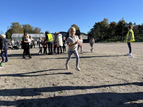 Vi har også gjort noen ting sammen med hele skolen. Vi har danset "Blime"-dansen i en full skolegård. Vi har også gjennomført Lova-joggen. Dette ble gjort på grusbanen ved KKG. Her løp elevene runder for å samle inn penger til Finns Fairway. Det var en kjempefin dag med godt humør, strålende sol og masse energi.