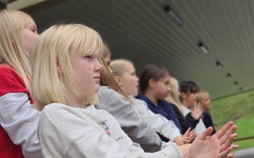 5. trinn, som sto ansvarlige som "for-dansere", hadde på forhånd øvd masse på både bevegelsene og selve sangteksten til BlimE. Det hadde sannelig de øvrige elevene gjort også! Samlende og flott for barn og voksne som del av Lova IL!