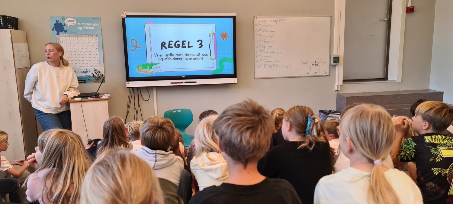 Hele trinnet har også jobbet med trinnregler for 5. trinn i klassens time; regler om hvordan de ønsker å ha det på trinnet. De er slik: