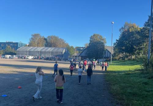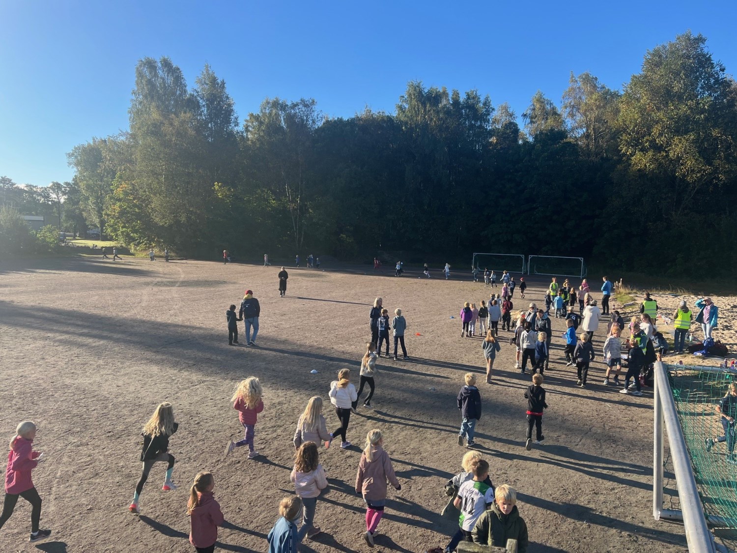 Med godt humør og fantastisk innsats jogget elevene på 1.- 4. trinn en haug av runder rundt Gimlebanen. 3. trinn løp 1203 runder til sammen i det nydelig høstværet!