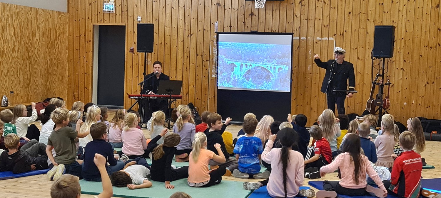 KONDUKTØRENE inviterte elevene på Lovisenlund med på en kultur-reise gjennom jernbanens historie i Norge i skolens gymsal i uke 42.