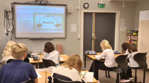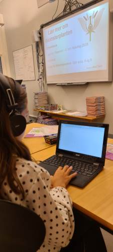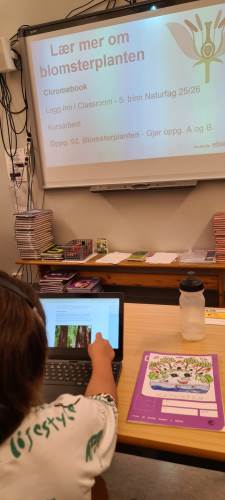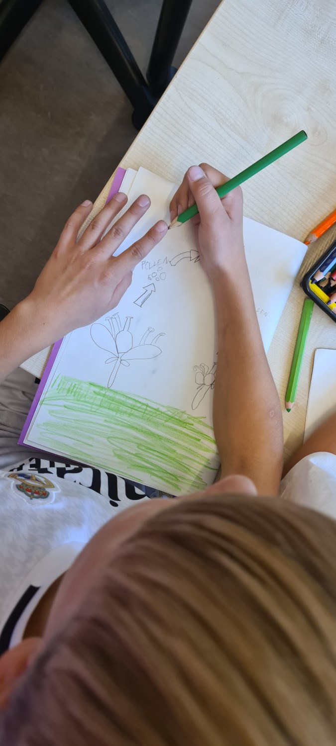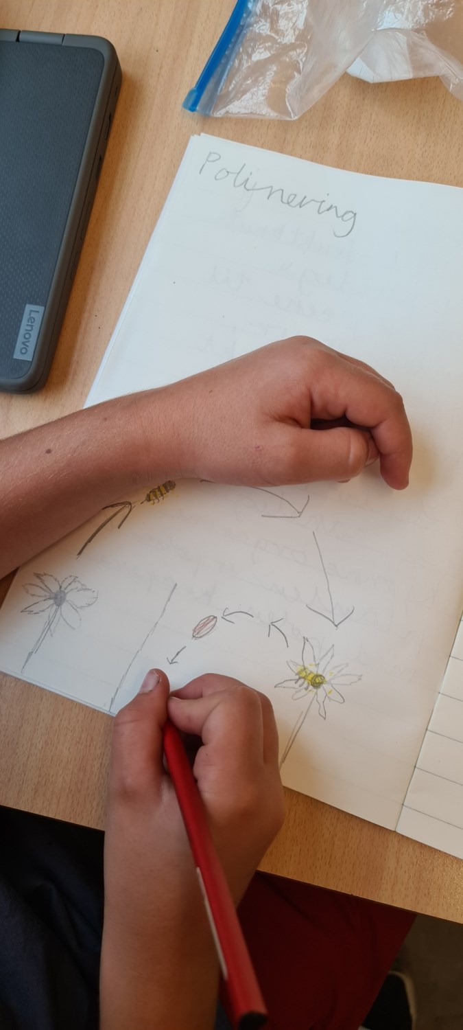 Fra skolestart og frem til nå har vi jobbet med blomstens oppbygning, pollinering, hypoteser og forsøk, fotosyntesen og klorofyll i naturfag.