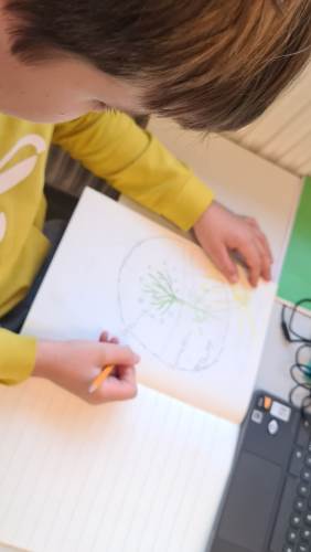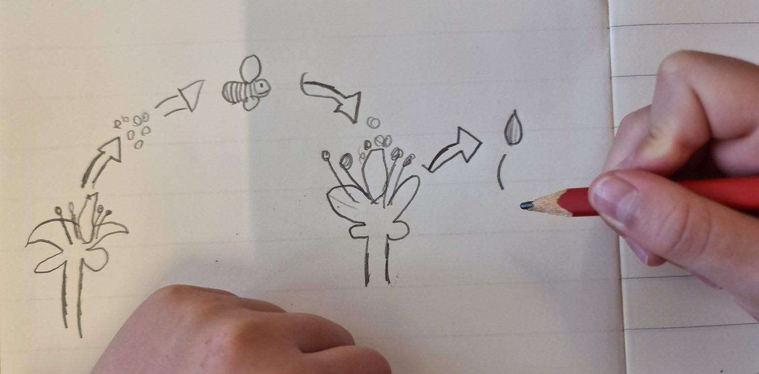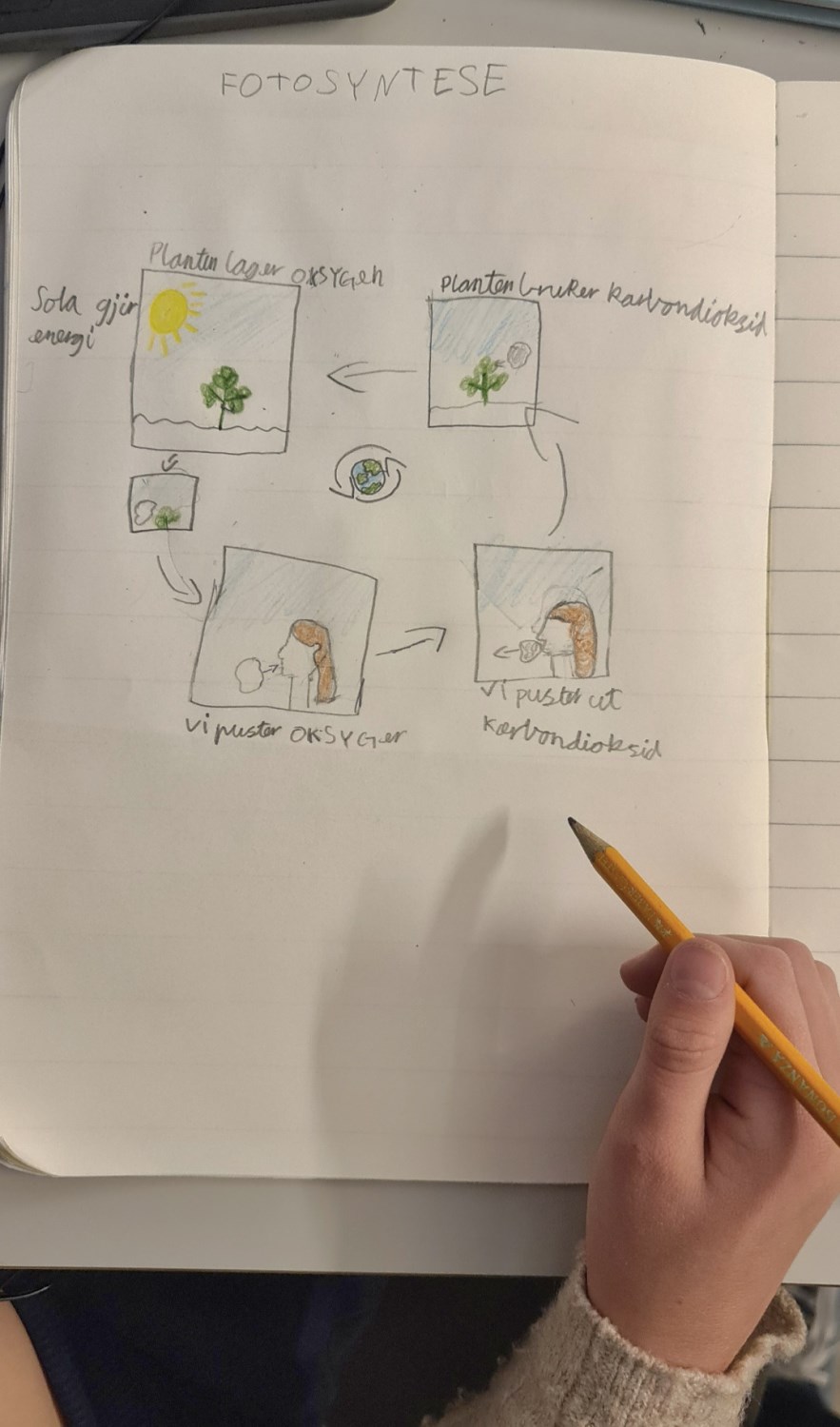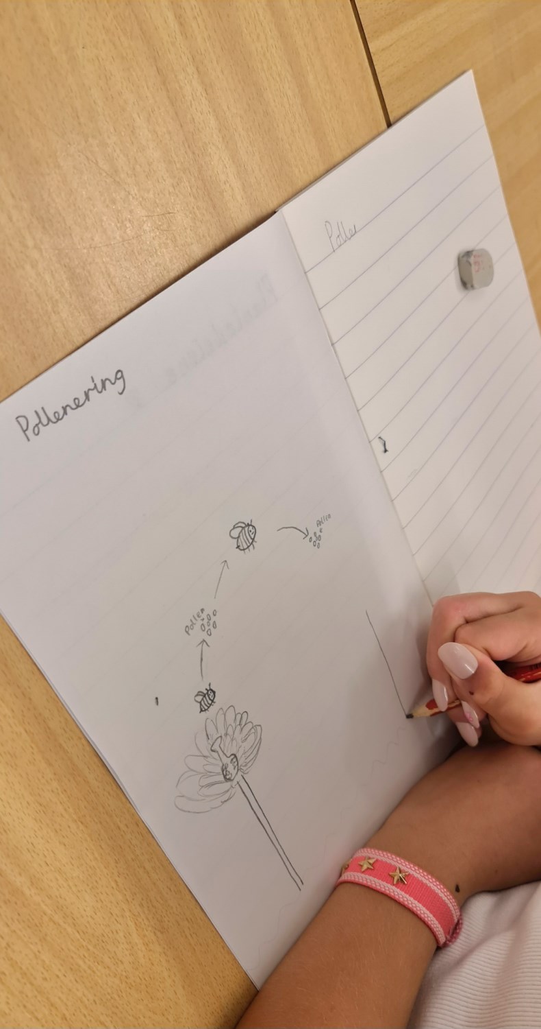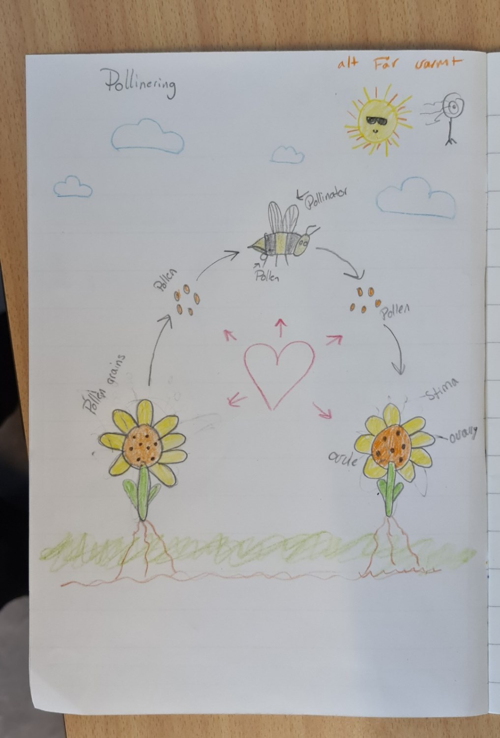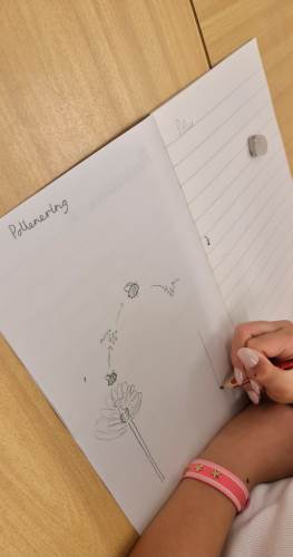 I egen arbeidsbok med egen forside har vi illustrert og skrevet det vi har lært. Det startet med blomstens ulike deler og pollinering. Hvordan og hvor bær utviklet seg fra blomst til bær ble undersøkt, og vi koste oss med bær og vaniljesaus; Naturen gir og vi får.