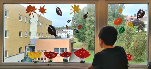 Idet løvet nå har høstfarger på har vi laget Høstvindu i basen vår, og vi har lært om fotosyntesen og om hva som skjer i plantene når klorofyllet "trekkes ned" i stammen. Vi vet noe om både oksygen (O2), karbondioksid (CO2), sollys, vann og produksjon av sukker. Det er spennende med kjemiske prosesser, noe vi skal jobbe mer med i naturfag fremover.