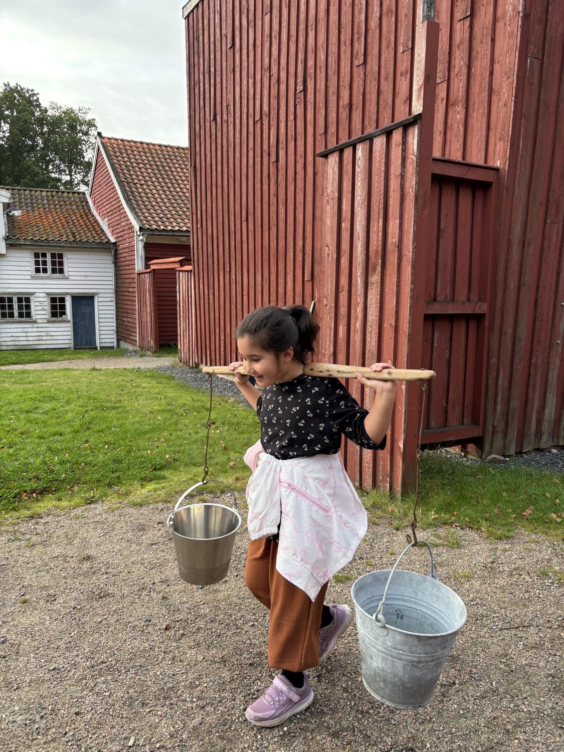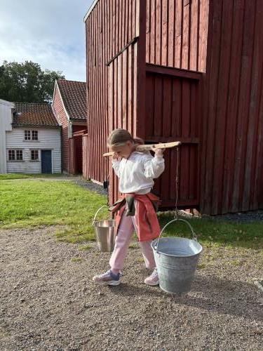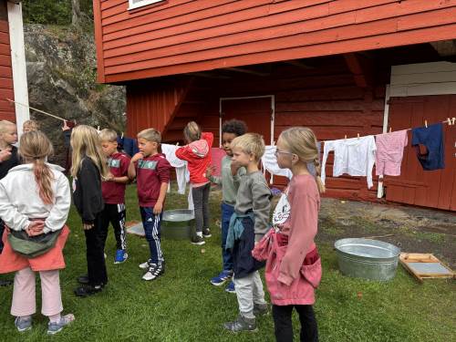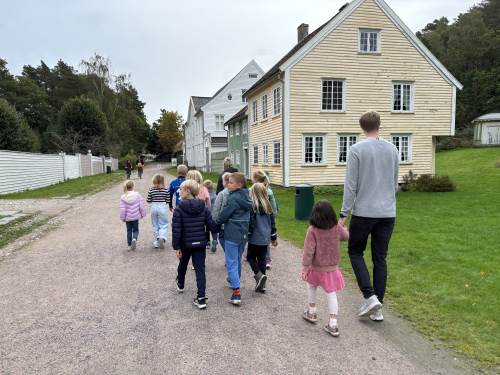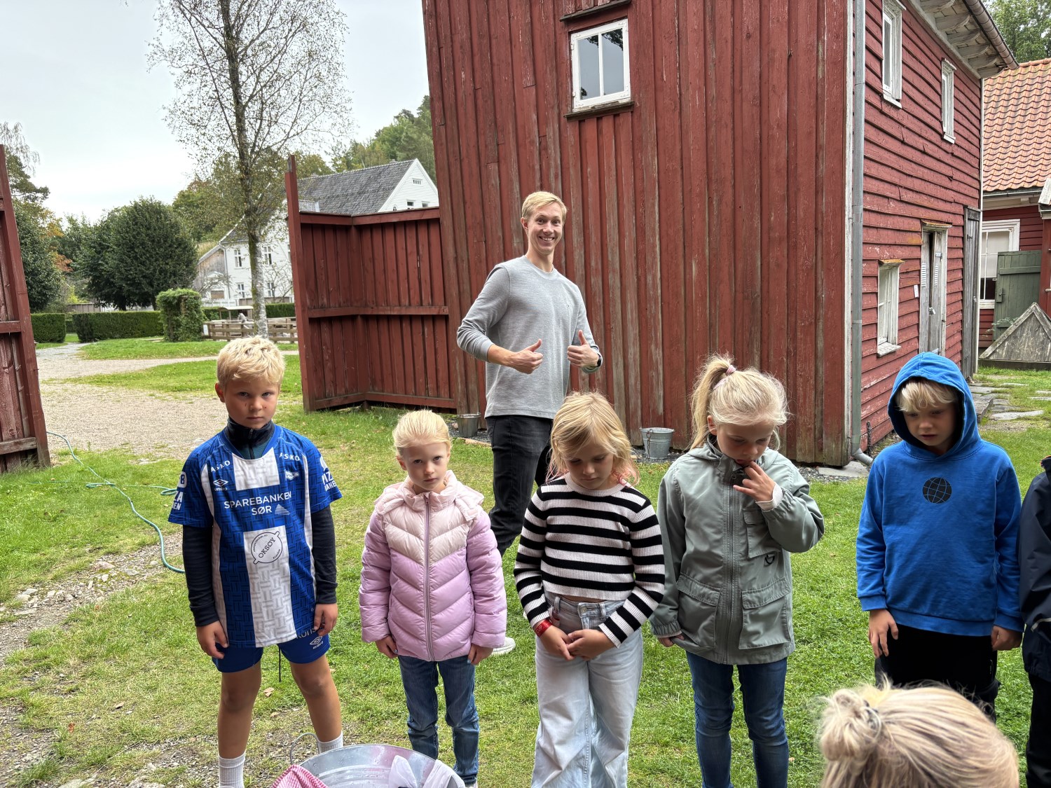 Som en førinnlæring til «vi i verden»-temaet, besøkte vi Vest-Agder museet på Kongsgård rett før høstferien. Der fikk elevene et innblikk i hvordan det var å leve i Kristiansand i gamledager.