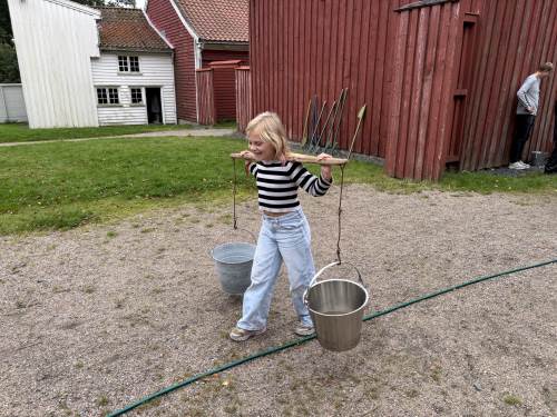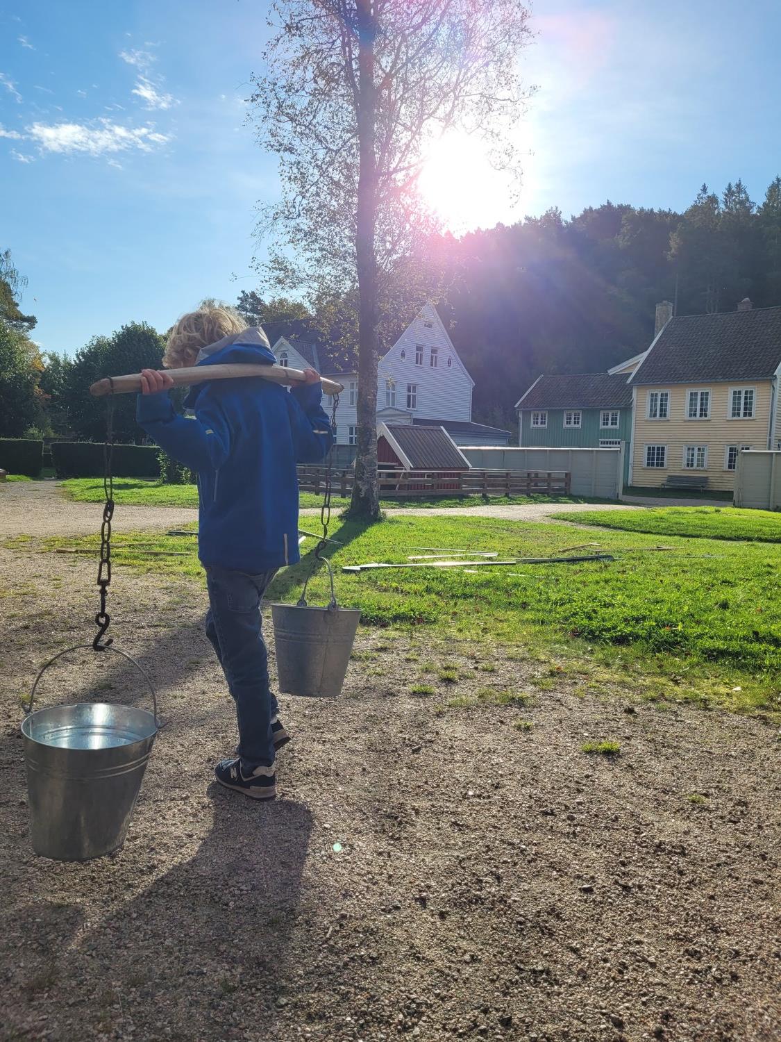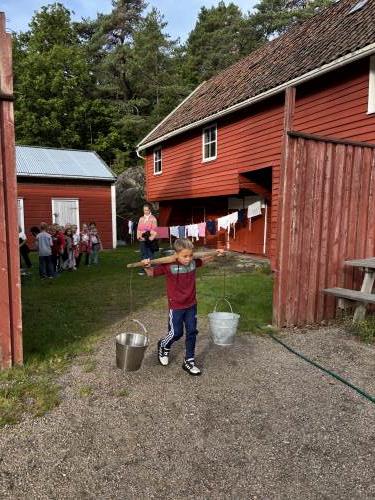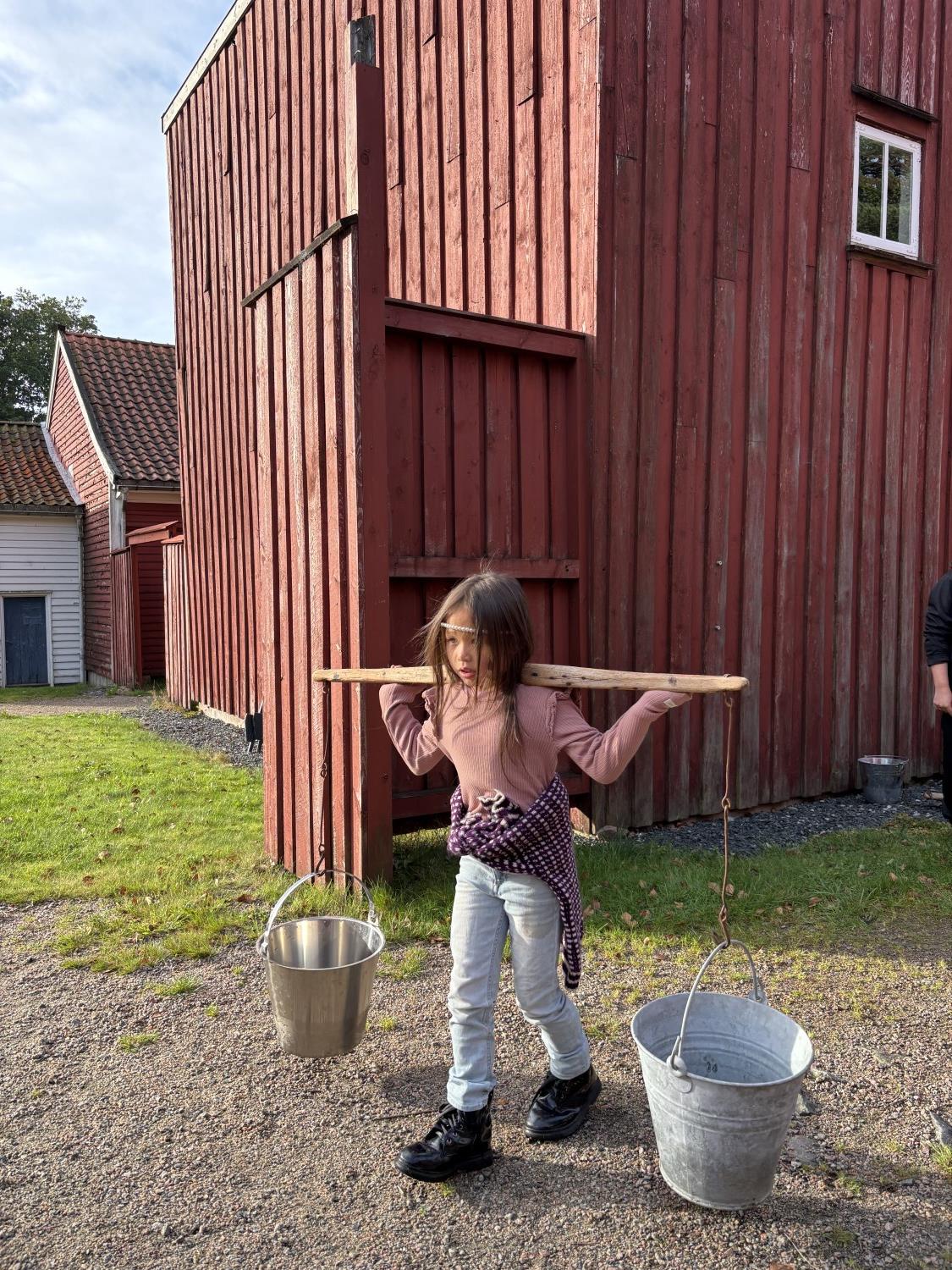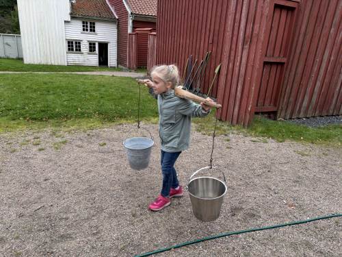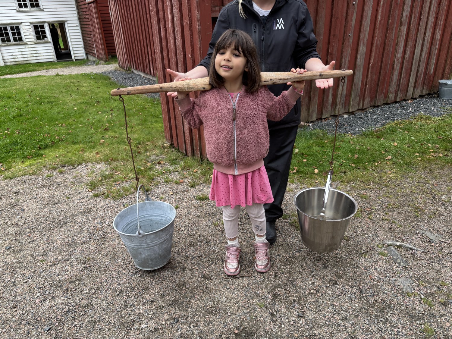 Som en førinnlæring til «vi i verden»-temaet, besøkte vi Vest-Agder museet på Kongsgård rett før høstferien. Der fikk elevene et innblikk i hvordan det var å leve i Kristiansand i gamledager.
