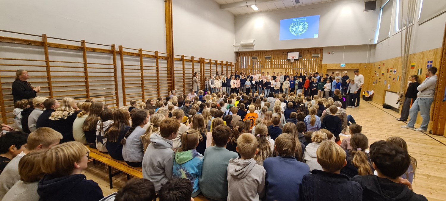 6. trinn sto ansvarlige for en innholdsrik FN-samling i skolens gymsal 24. oktober.