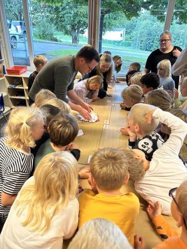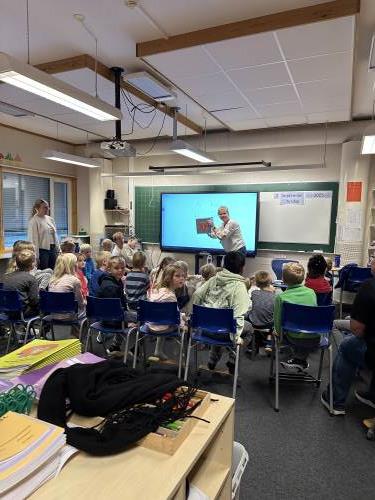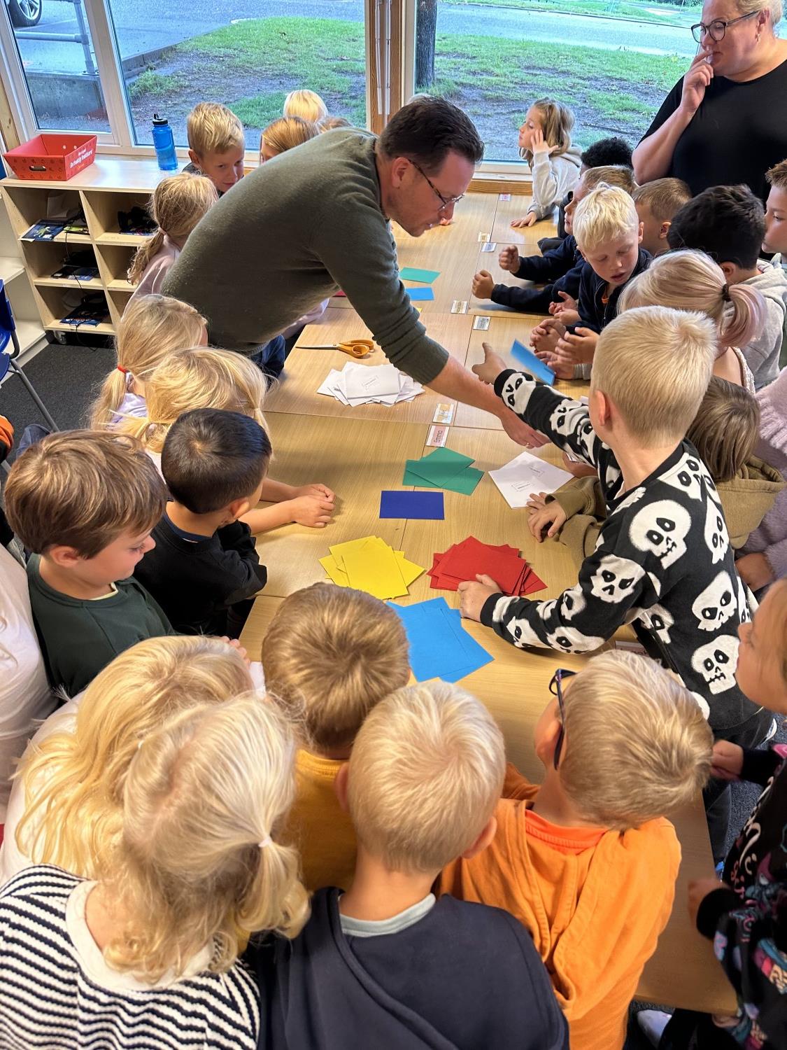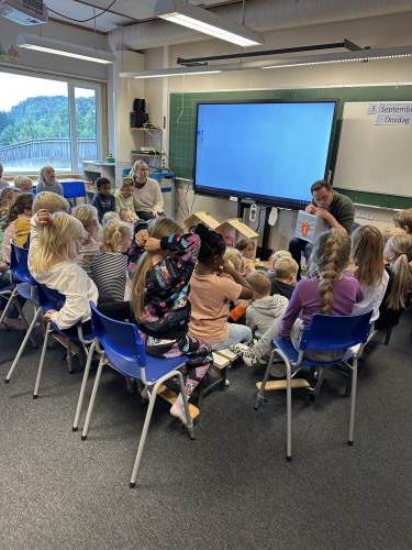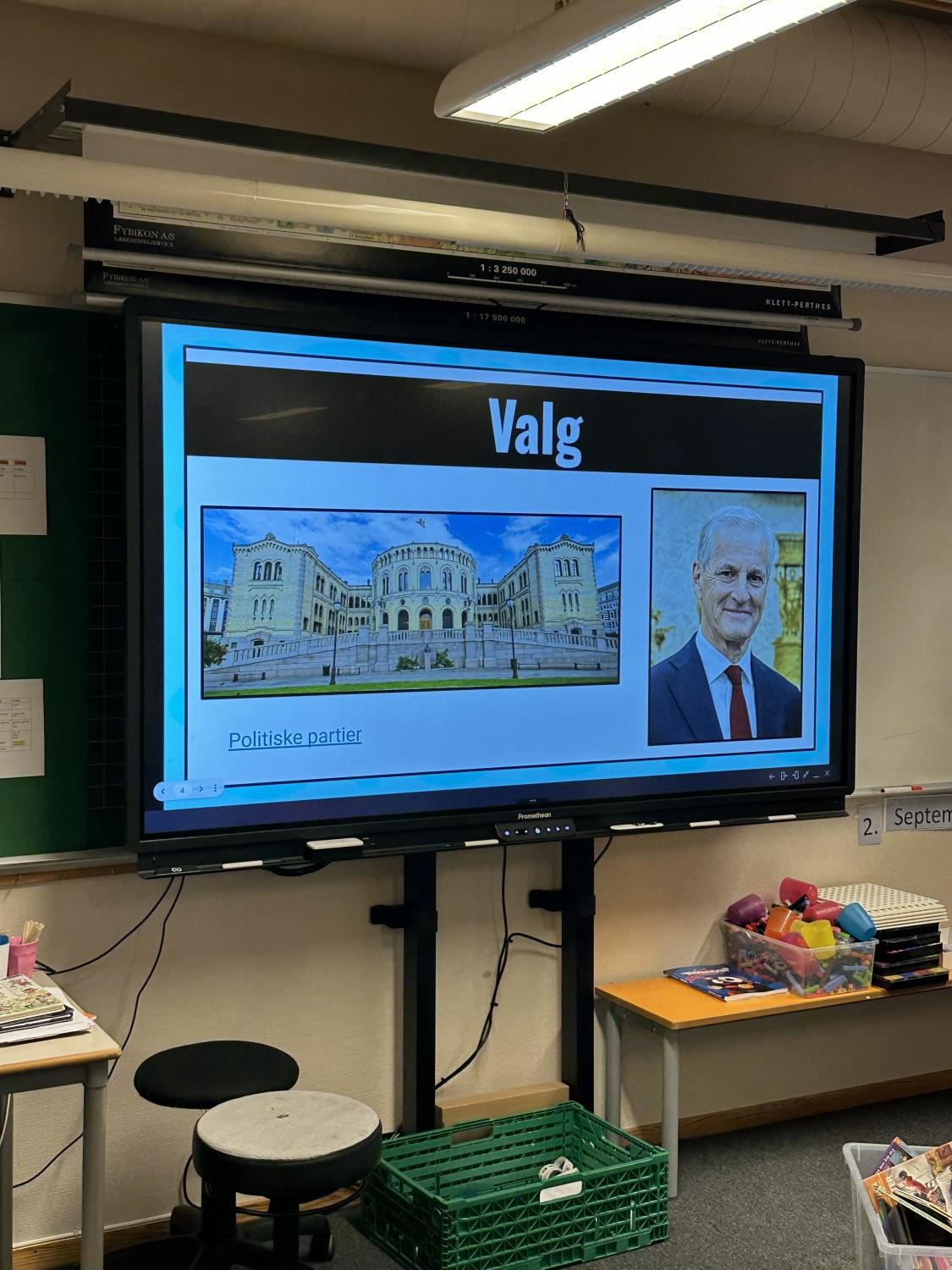 I dag har vi hatt valg på 2. trinn. Vi har snakket om hvilke farger de ulike partiene har, hvem som leder partiene og hva de ønsker å oppnå. For å gjøre dette forståelig har vi omtalt partiene som “lag”. Vi var så heldige å få besøk av pappaen til Astrid Marie i 2a. Han fortalte om reglene ved valg og foretok et nesten helt realistisk valg. Alle fikk velge seg en fargestemmeseddel som de fikk stempel på før den ble puttet i urna. Etter avstemningen hadde vi opptelling. Alle var fornøyde med resultatet.