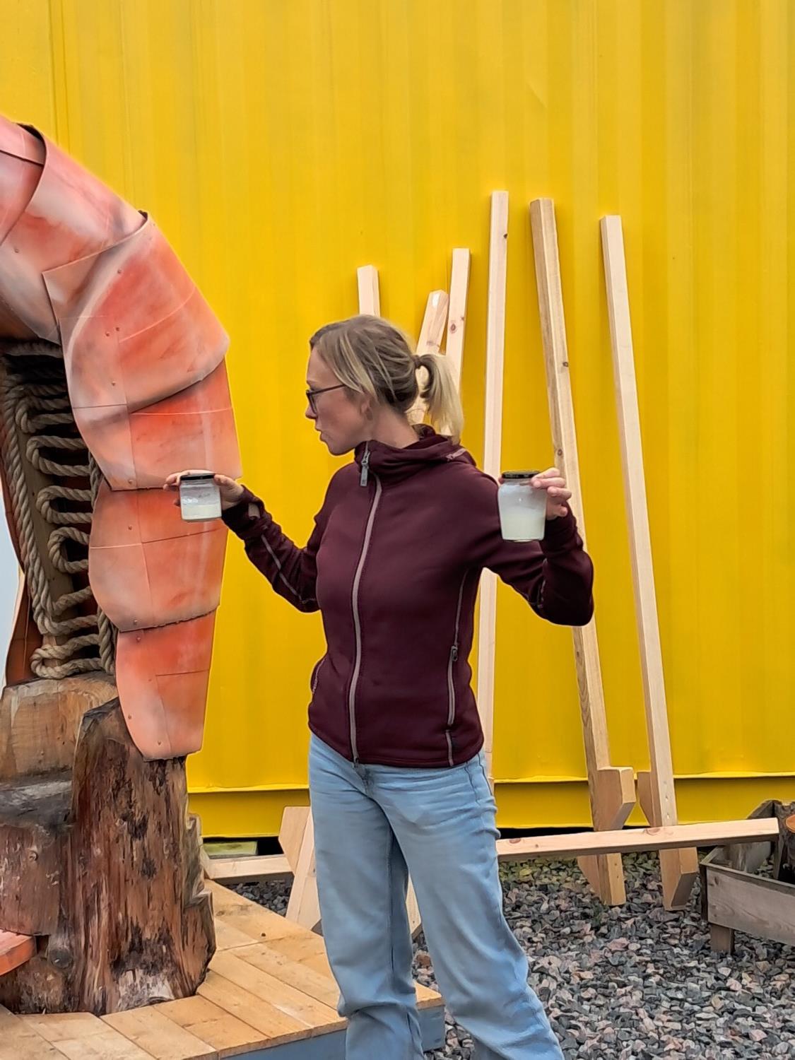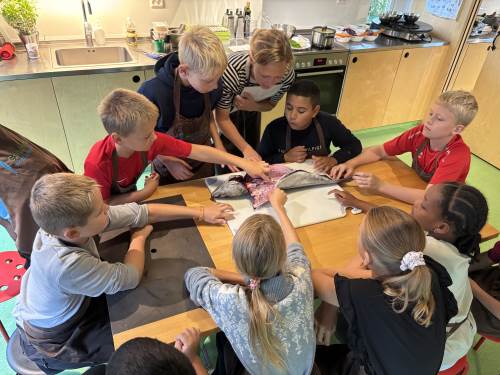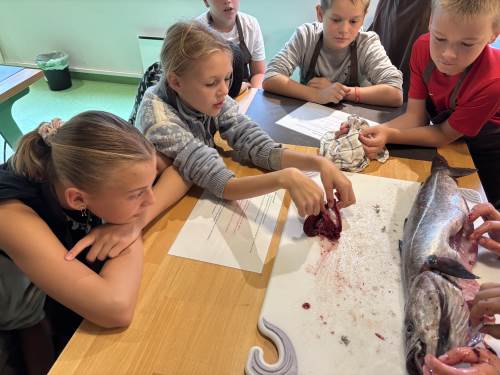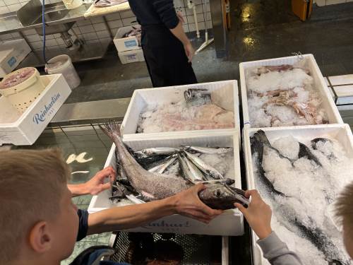 Dag to møtte vi opp på fiskebrygga. Der stod Helene og Marcus (en av norges raskeste filetskjærere) og ventet på oss. Denne dagen var fokuset på å lære om organene til fisken og tilbereding av fisk. På menyen denne dagen var det tacoinspirerte fiskepinner med egenlagde potetlomper og ulike salater. NAM!